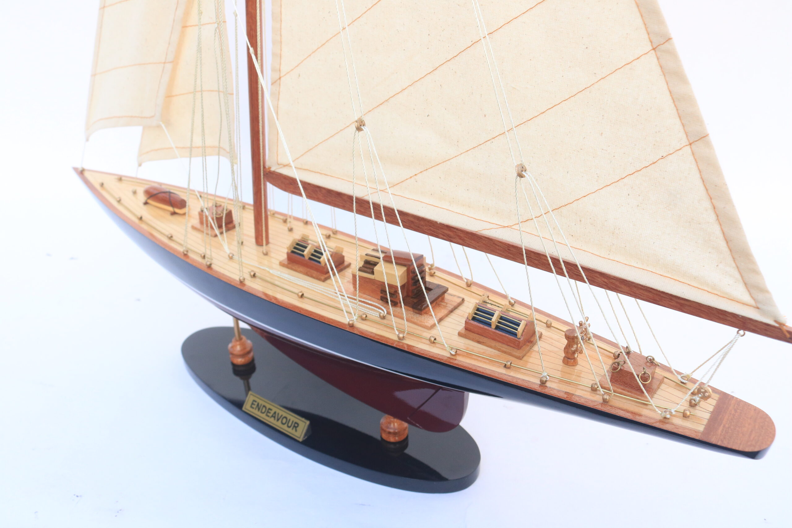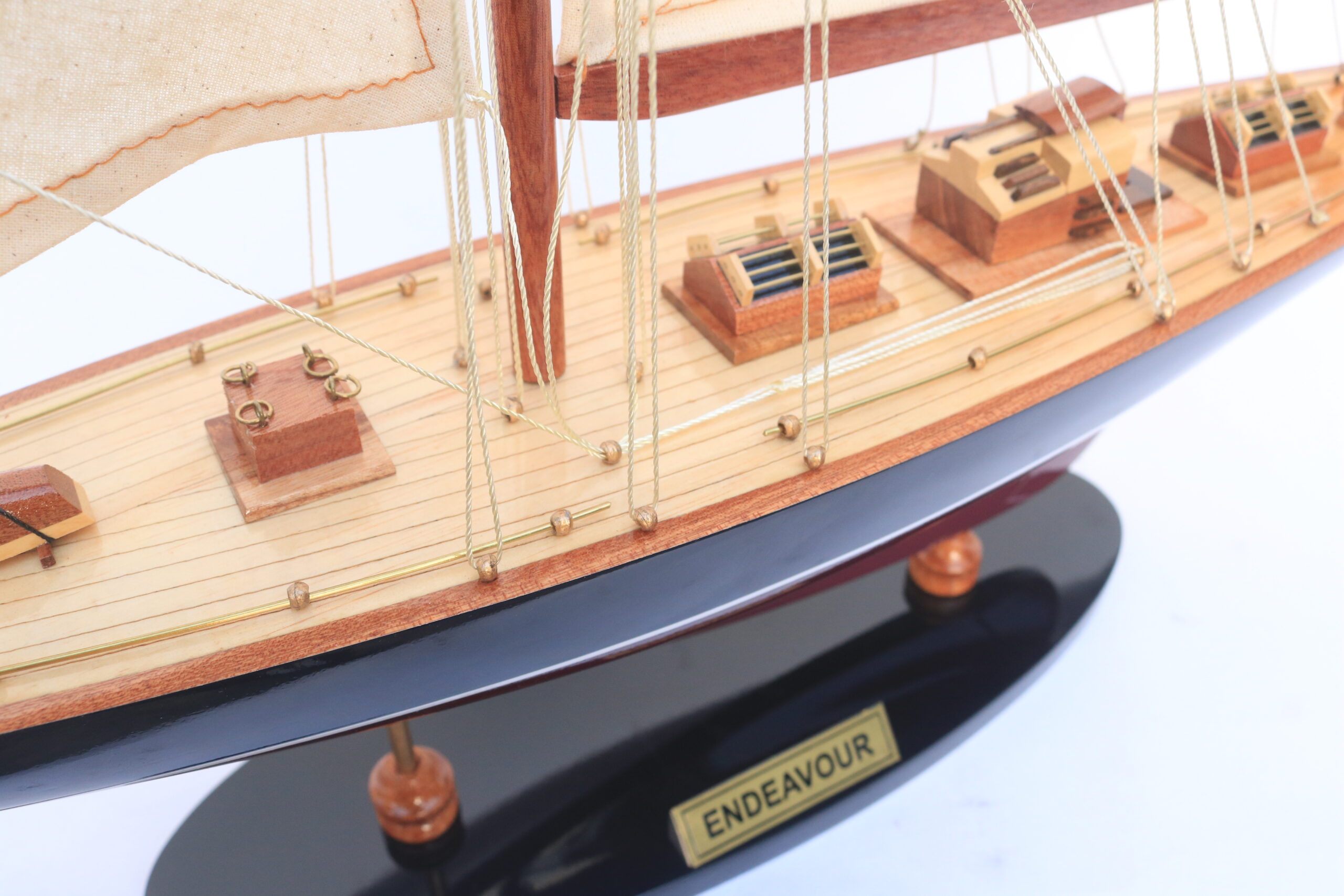 Beautiful wooden model of the famous ship the Endeavour in 80cm length. Completely handmade and assembled from only wooden parts.