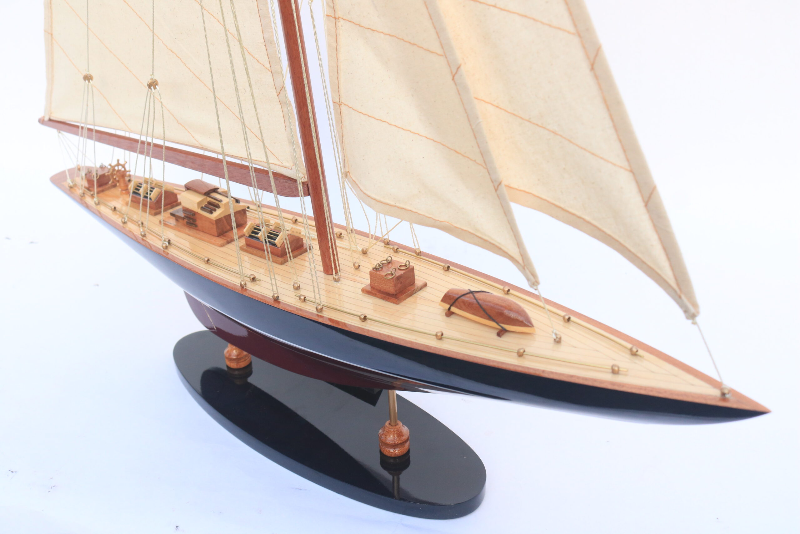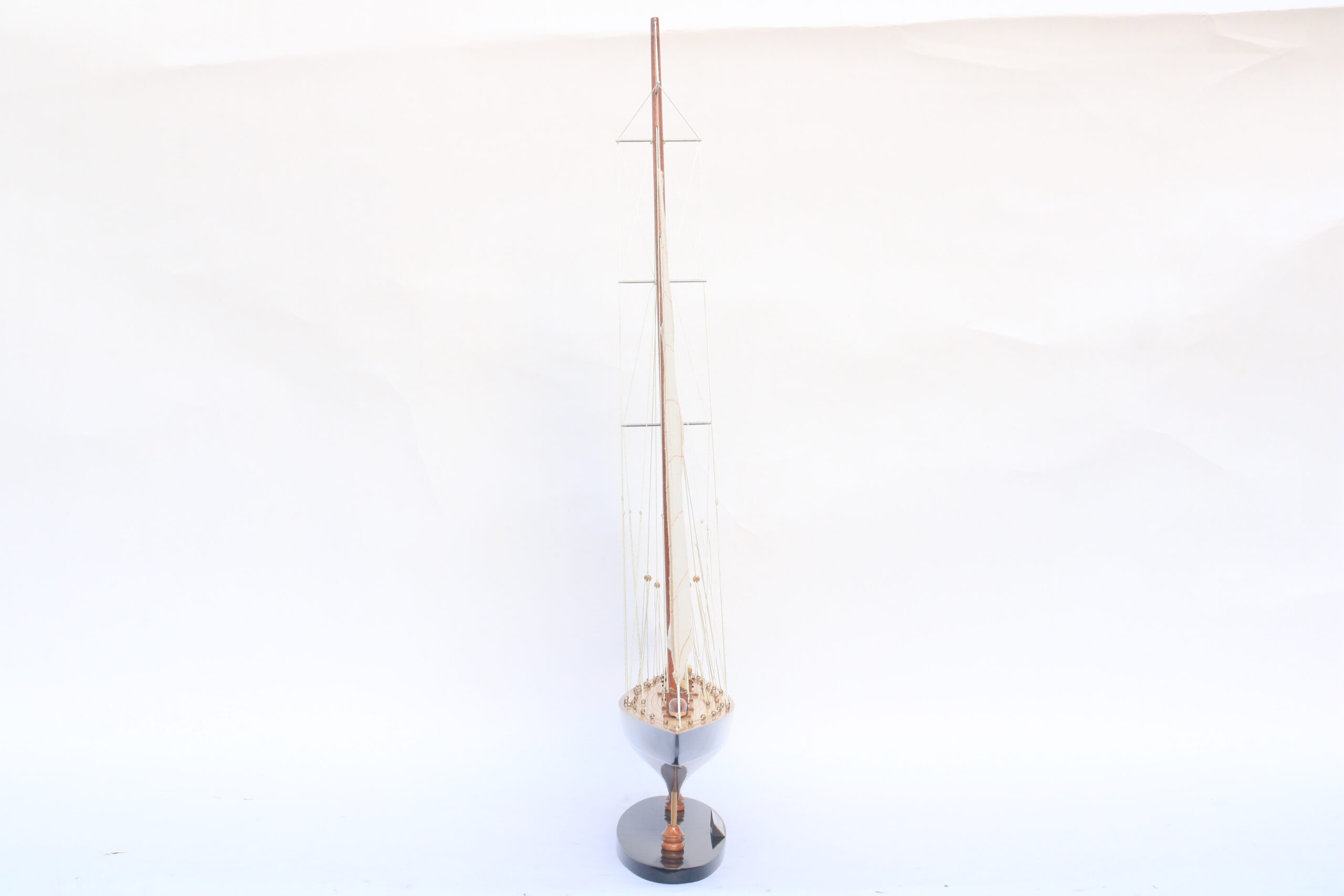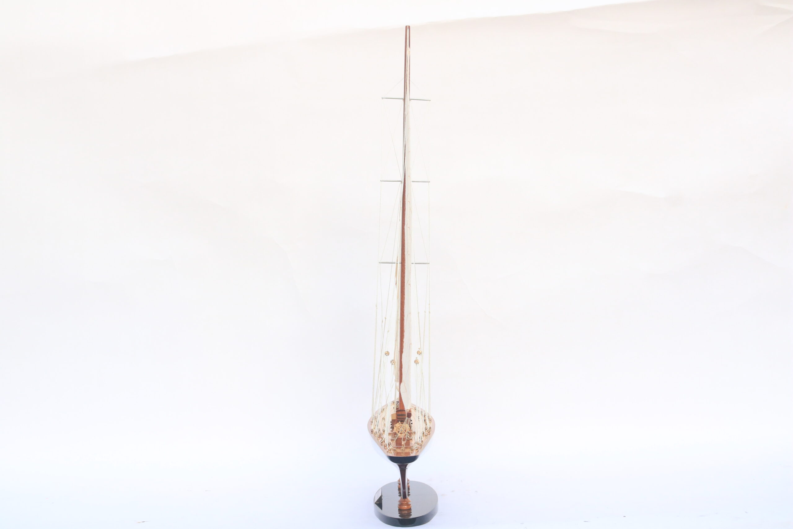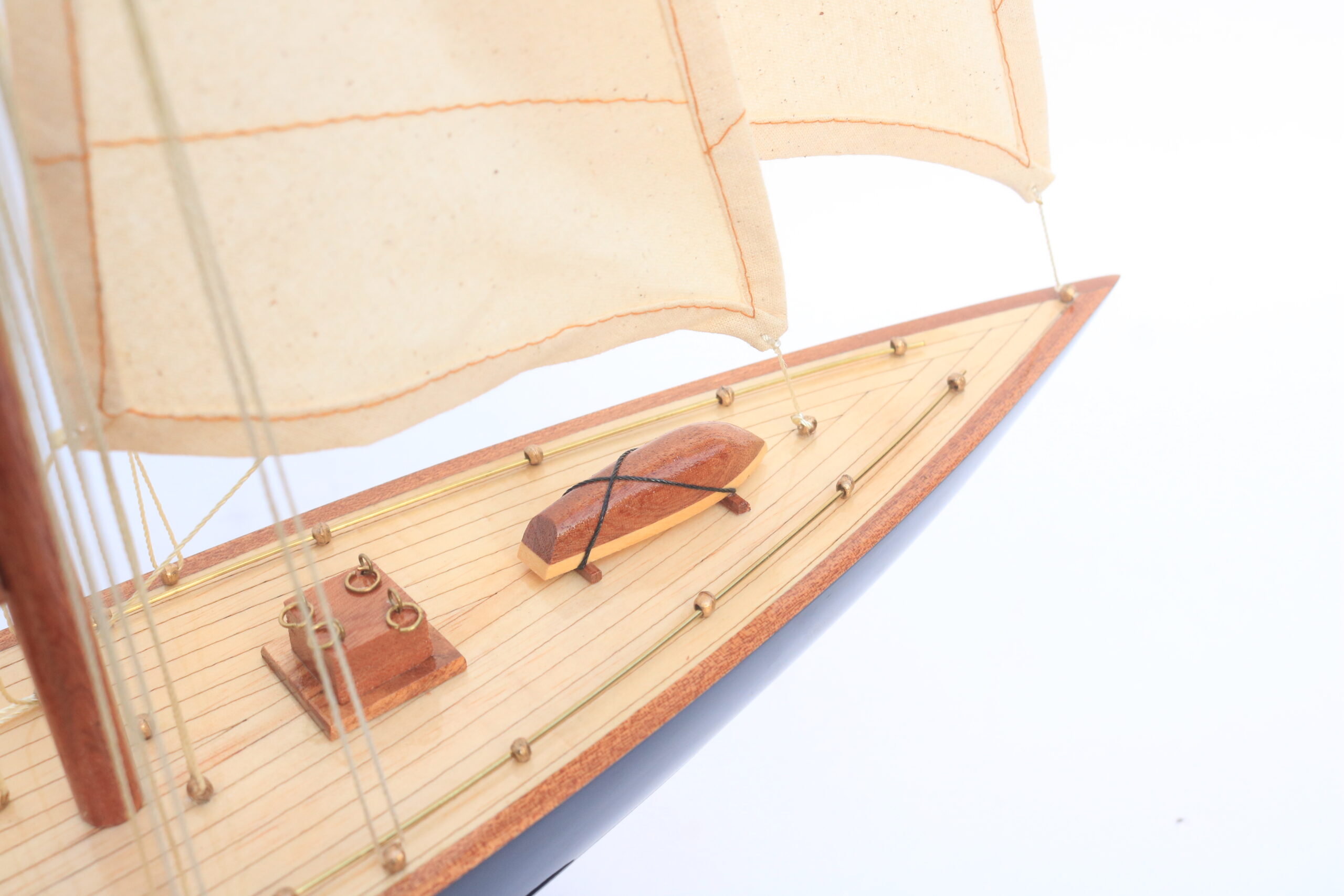 You will receive a box containing this wooden boat, you must raise the mast upon receipt, and then carefully tighten/slide the appropriate lines and linen sails.