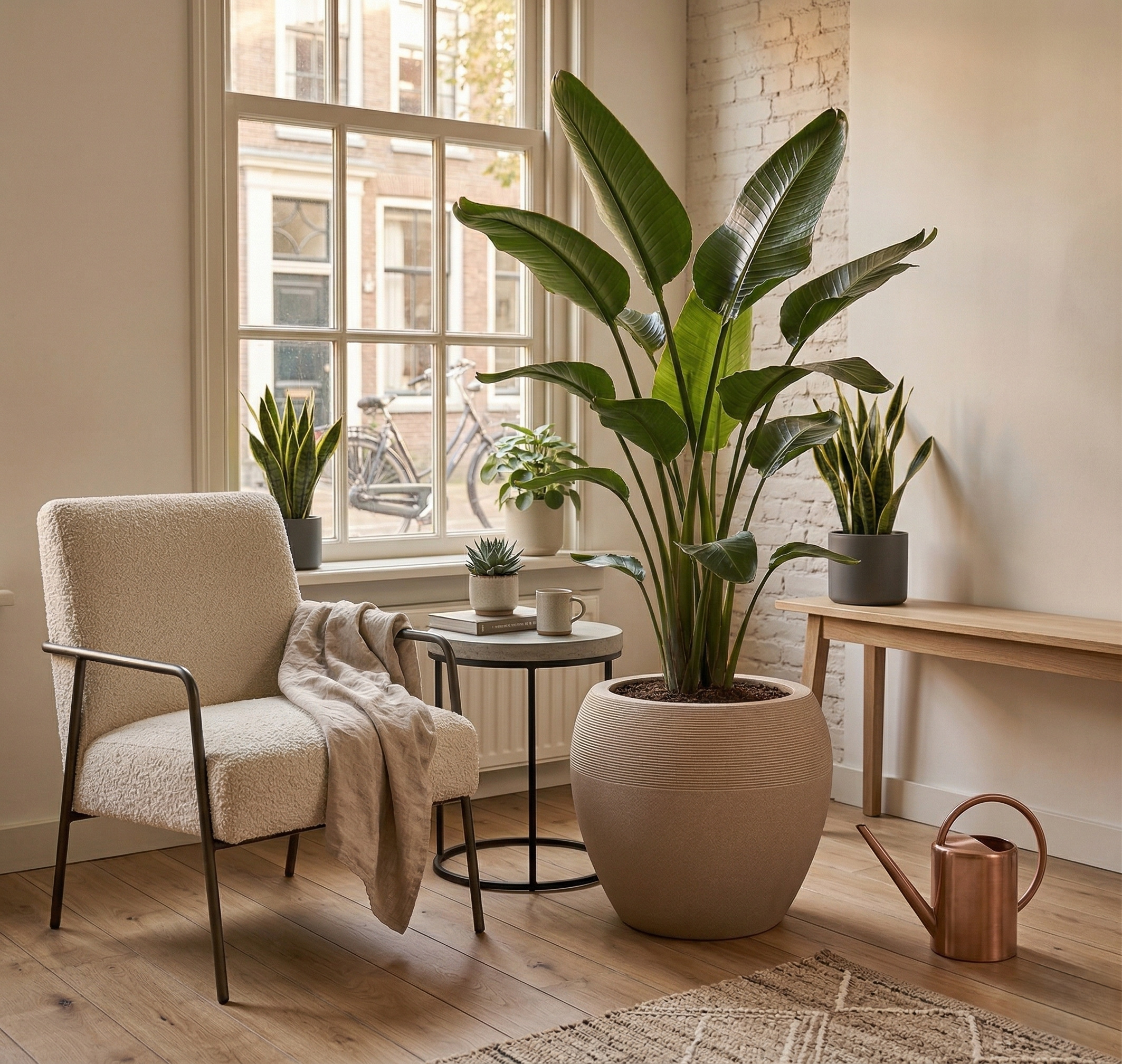 Looking for a stylish and primal addition to your garden or interior? The Odin globe pot in a beautiful, warm sand color is a timeless choice. What immediately stands out about this model is its refined finish: the top half features an elegant, horizontal ribbed pattern, while the bottom half runs smooth and smooth. This gives the planter a unique and natural look that will stand out in any setting.