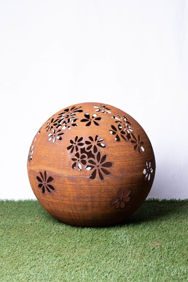 A distinctive mood creator in your garden, Surely you can call this garden lamp in the shape of a sphere. A beautiful figure has been extracted from this bulb, through which warm white light shines in the dark. This light globe is made of 2mm thick untreated iron, which gives a beautiful and timeless (rust) brown color.
