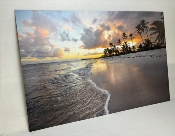 Do you want a beautiful sharp painting depicting a beach with palm trees but find glass too shiny? Then this series of paintings is a good alternative. This painting is made from a smooth panel of mdf, on which this image is depicted razor sharp, in a beautiful silk gloss look. You won’t have to deal with reflection with this type of painting. On the back, this painting is reinforced with a 15mm thick mdf frame.