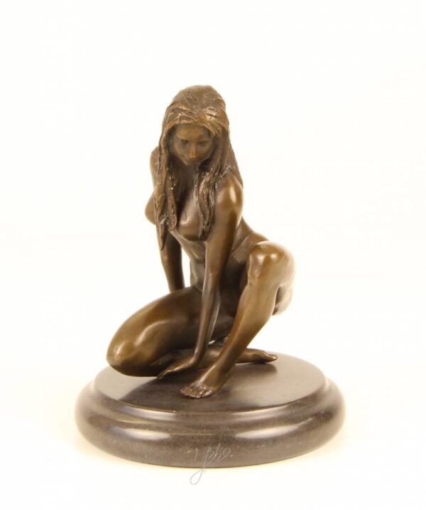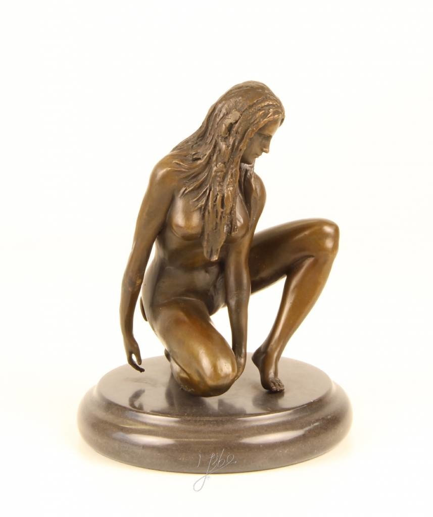 Beautiful statue of a female nude, on marble base, made of 100% high-quality bronze with a minimum copper content of 75% which guarantees a very long life and no unsightly stains. A beautiful and durable decorative object for home , business or garden, as well as a wonderful gift. Looking for a bronze sculpture for an anniversary? We can also provide text plates for the pedestal for you.