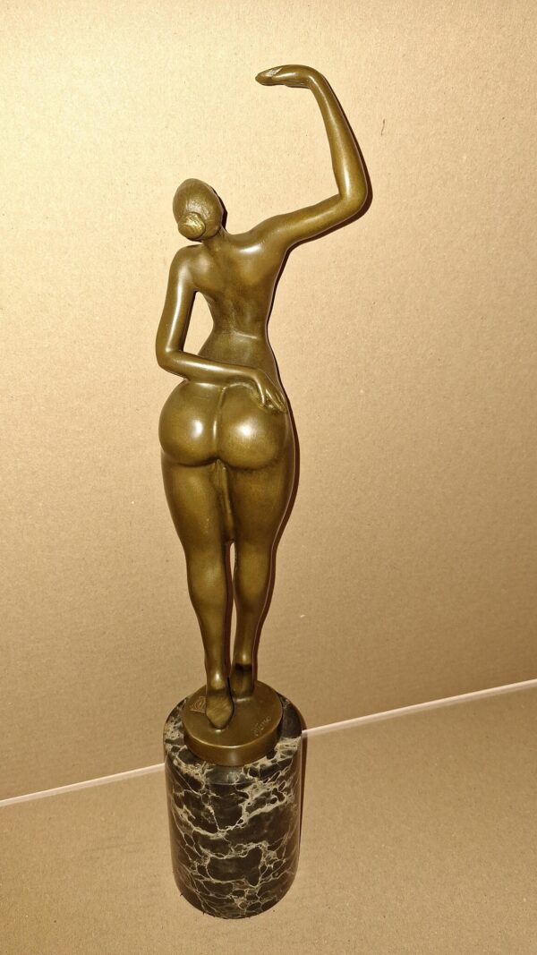 Statue bronze Naked woman one arm up on pedestal 44cm