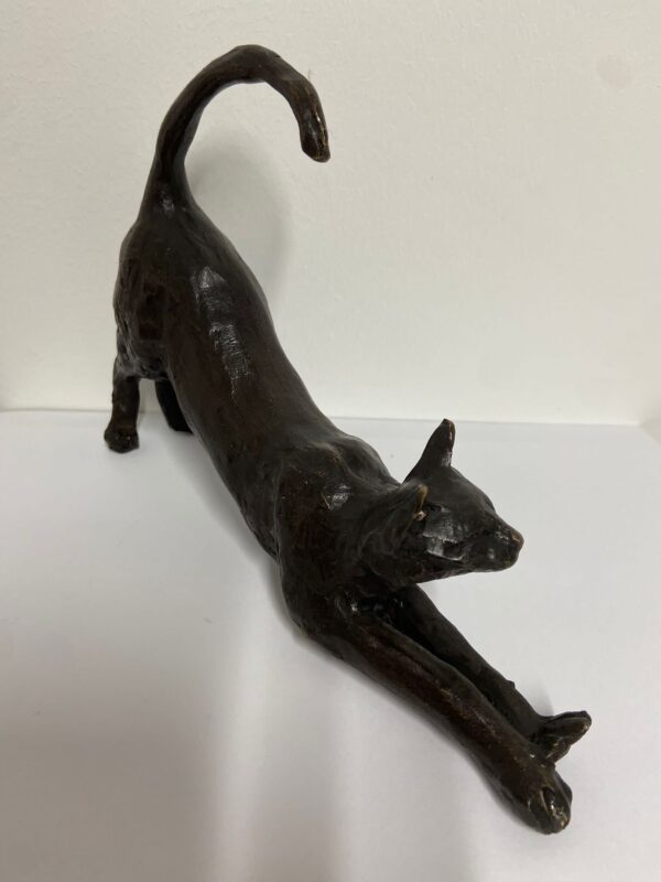 Statue bronze stretching cat 23cm