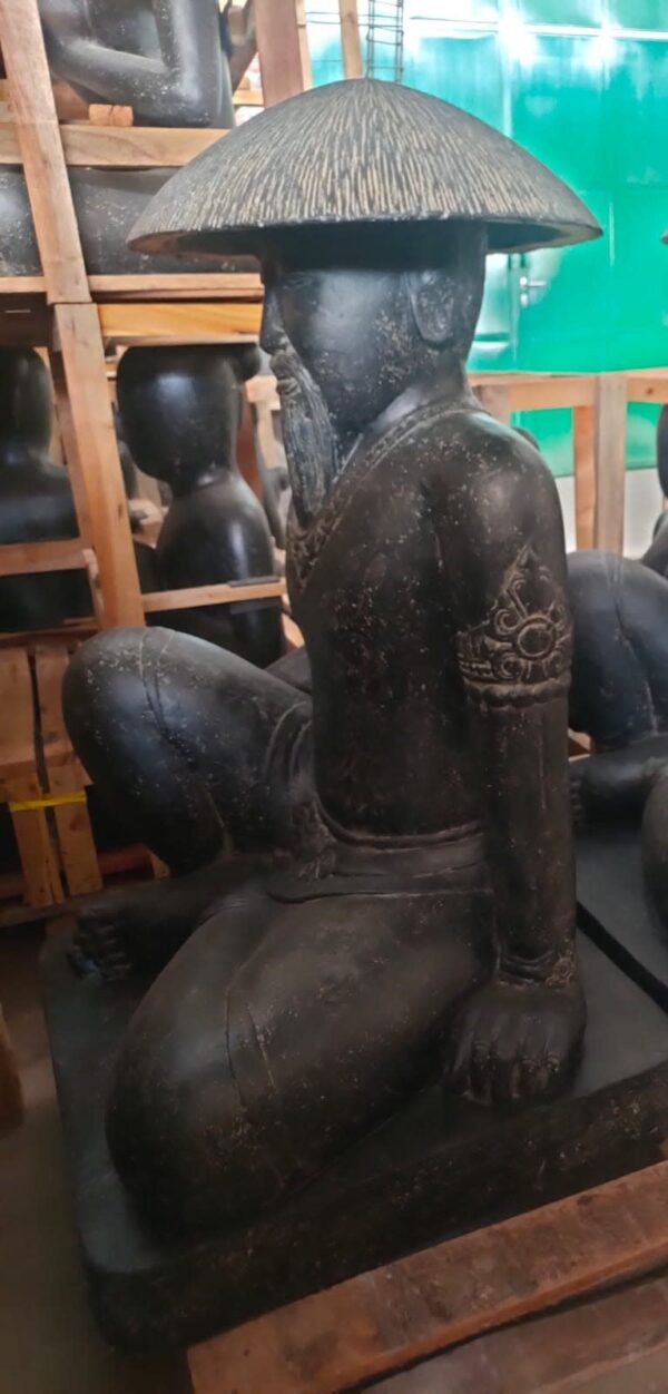 Your home or garden will have its own unique style with this statue of a squatting Vietnamese farmer. Made of high quality cast stone in a black color with a brownish wash.