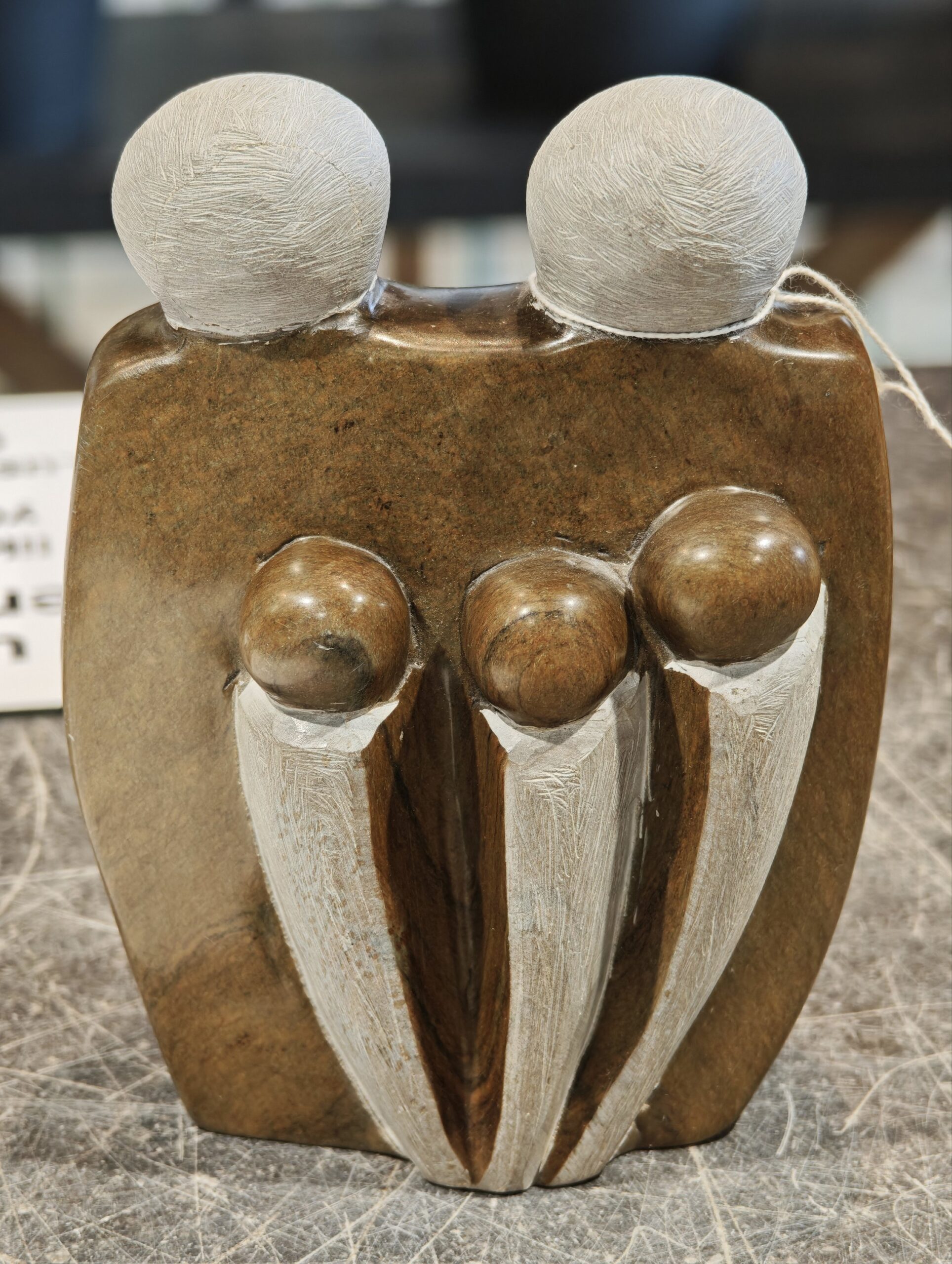 Soapstone statue parents and child 17cm