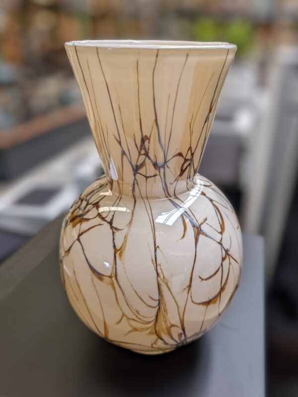All of Fidrio’s glass vases are handmade in the traditional, artisanal manner. The workable super hot glass is blown into a wooden mold, with the mold serving as the basic shape, but the hues and thus the look will be different with each vase. The sizes given are always Circa sizes.