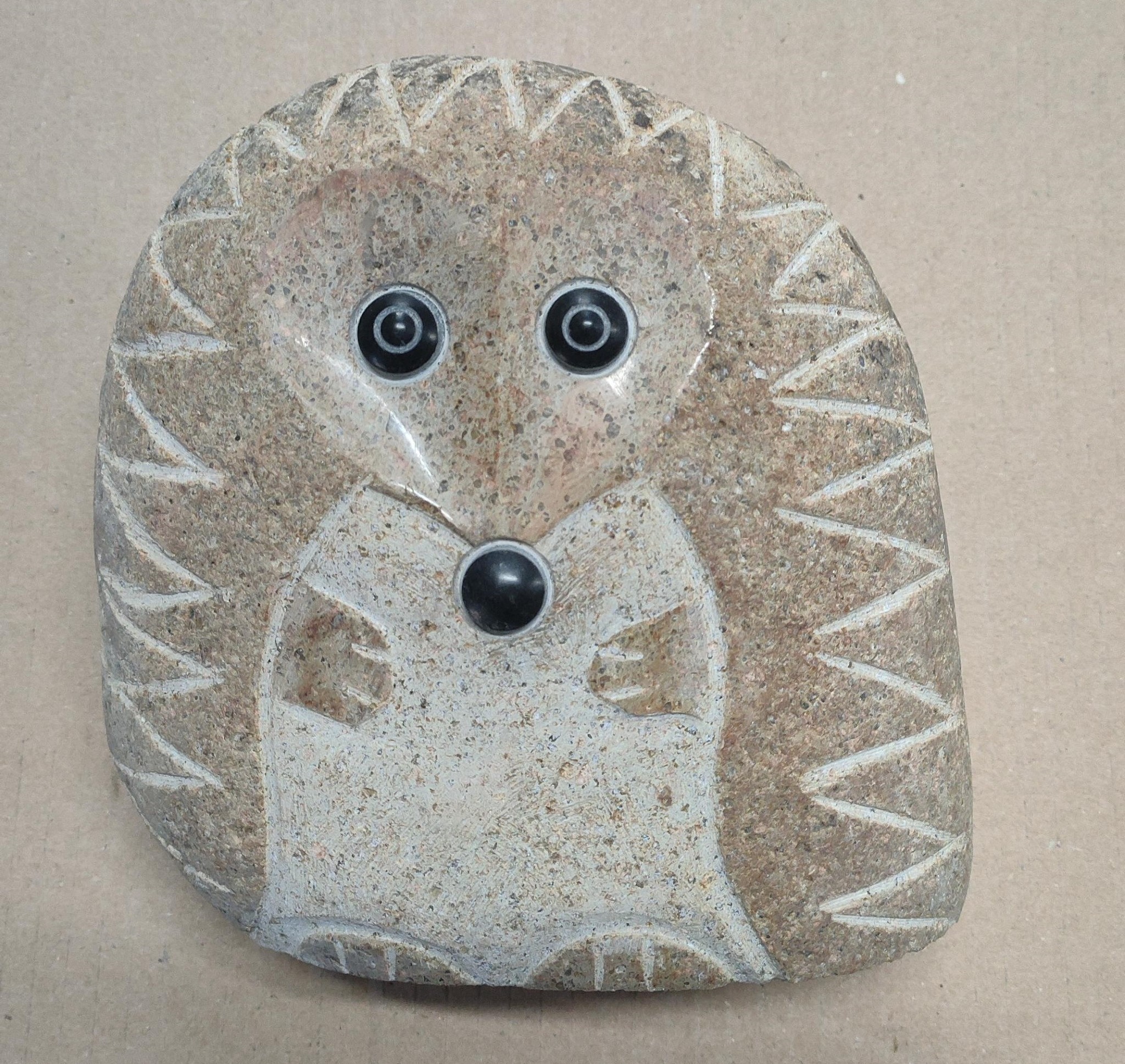 Beautiful stone statue of an owl, handmade on a 15cm boulder. First the image is drawn on the boulder, then a chisel is used to carve out the lines and some surfaces, creating depth differences. The highest lying parts are then carefully polished. A huge job, but the result is worth it.