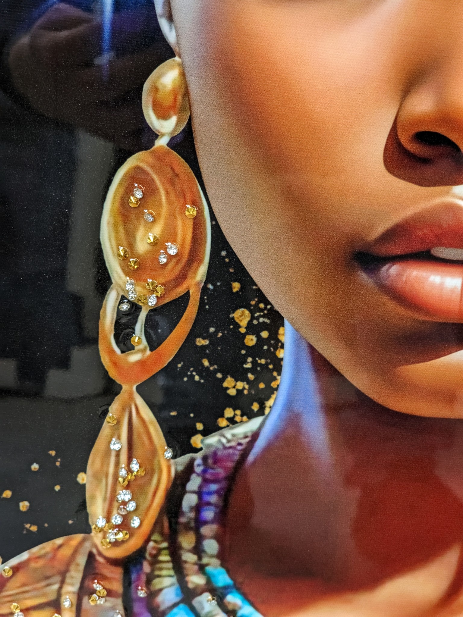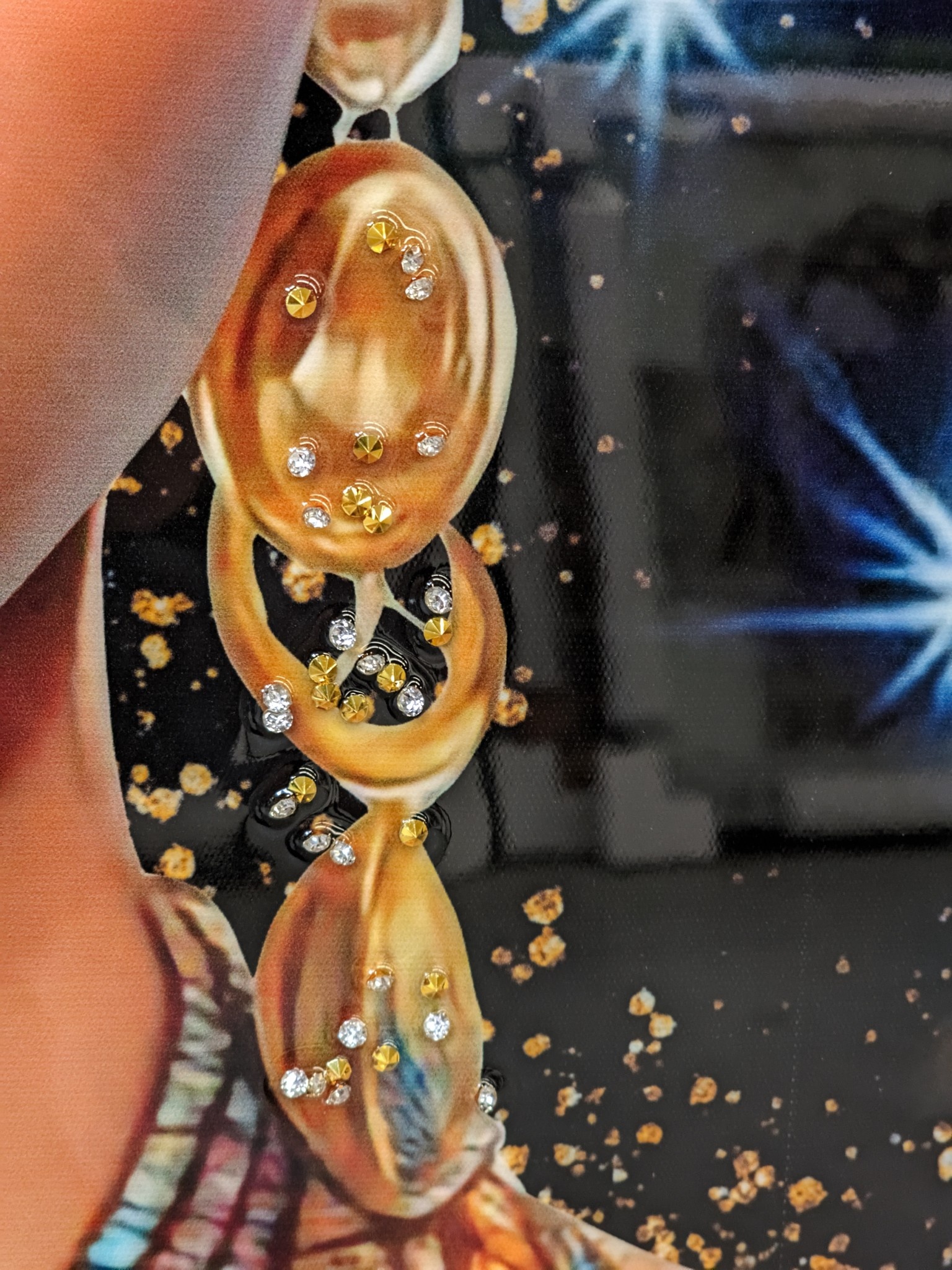 Rhinestone painting Gold earrings 62x82cm high gloss