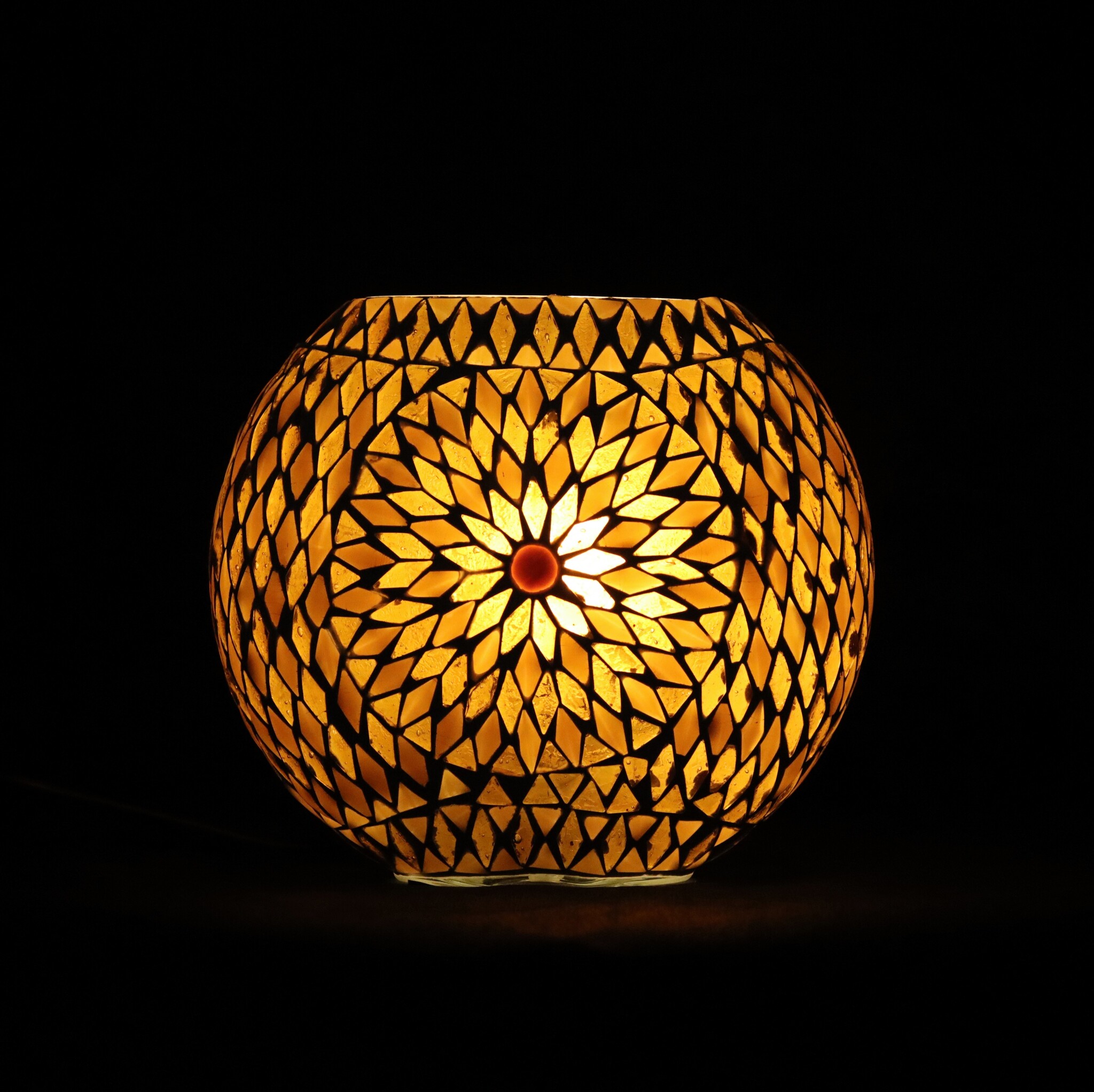 Brown/yellow mosaic lamp, for lots of atmosphere.