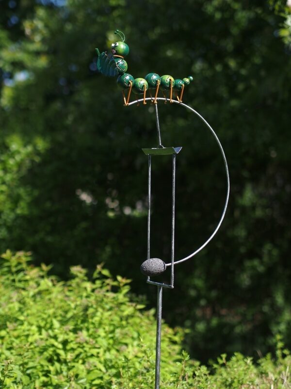 Superbly finished metal balance – tumbler with a caterpillar, which you can stick anywhere in the garden. It will move and spin in the wind. An ornament in the garden and beautiful to gift. Completely handmade and painted.