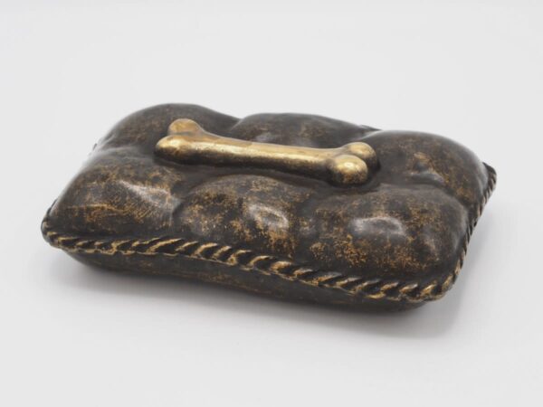 Beautiful urn in the shape of a dog pillow made of real bronze. The bronze of this statue has a guaranteed copper content of 75%, which greatly enhances its longevity and appearance.