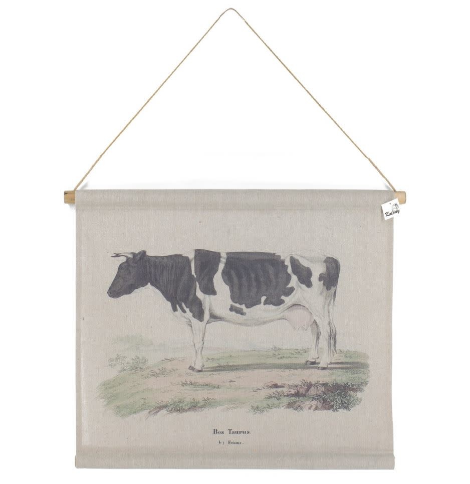 This large wall map of a cow is an old image from an old original school record and is an affordable piece of wall decoration for any interior. This blackboard is made of real linen, not paper. The size of this roll-up wall decoration is 64x52cm.