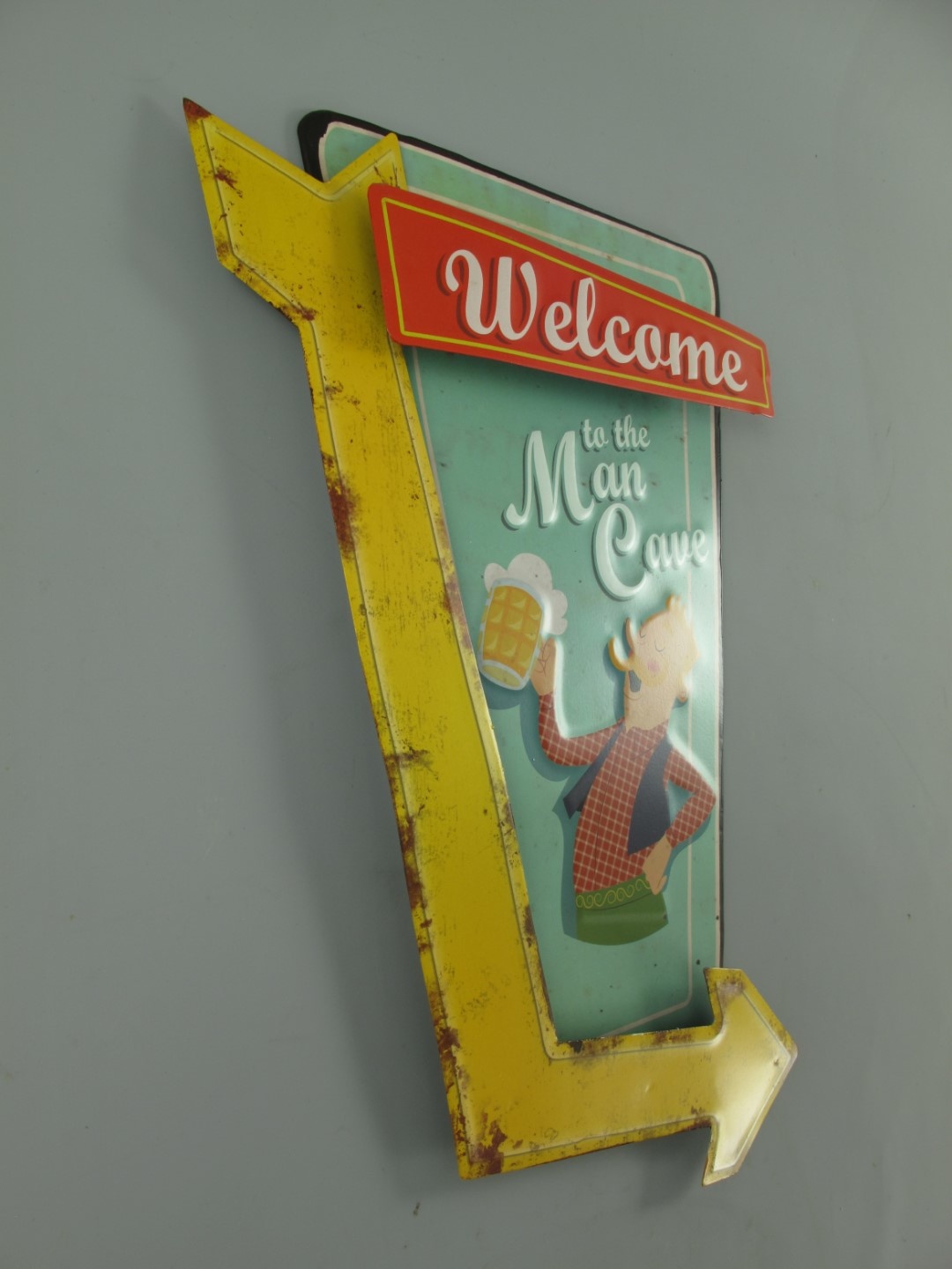 This wall deco is made of sheet metal, with a sprayed surface with a transfer over it and often a curled edge.