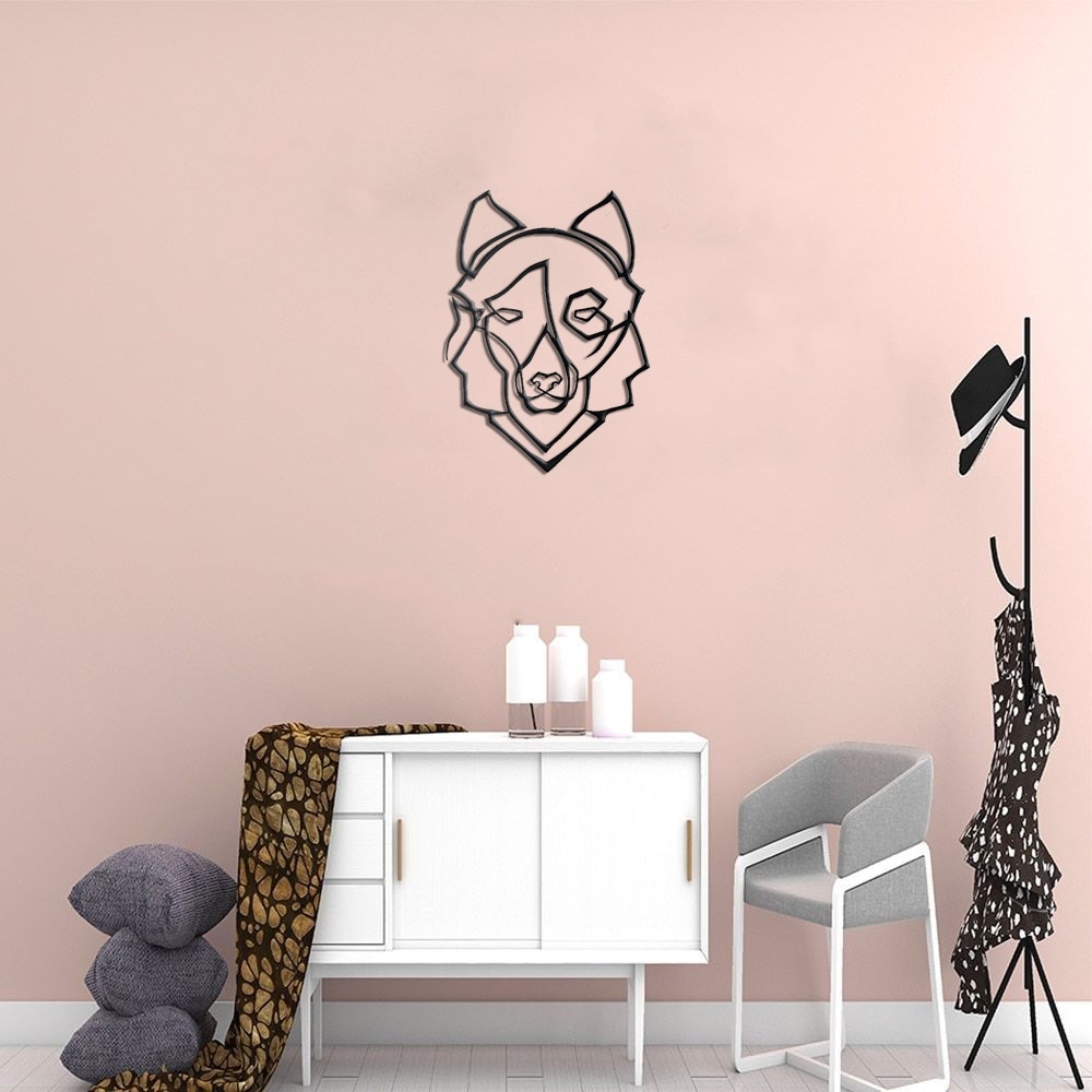 This large round black modern wall decoration hangs beautifully in any modern interior, but also in your business premises, practice, but also outside under a porch, this wall decoration is a great mood creator. This metal wall decoration is meticulously made with state-of-the-art laser equipment, making such as this wall decoration in the shape of a wolf’s head, figuratively depicted, cut out razor-sharp. The material used for this wall object is sheet steel no less than 1.5mm thick, so this wall decoration will not warp. Screws in this wall decoration ensure that this wall deco hangs about 1 cm free from the wall, creating a very nice shadow image and 3d effect.