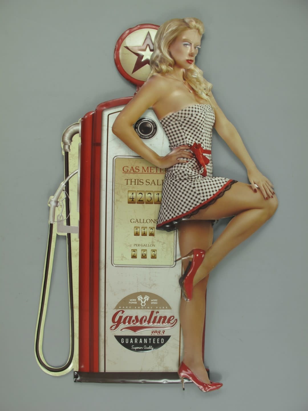 This retro-style metal wall decoration piece is a fun mood setter.