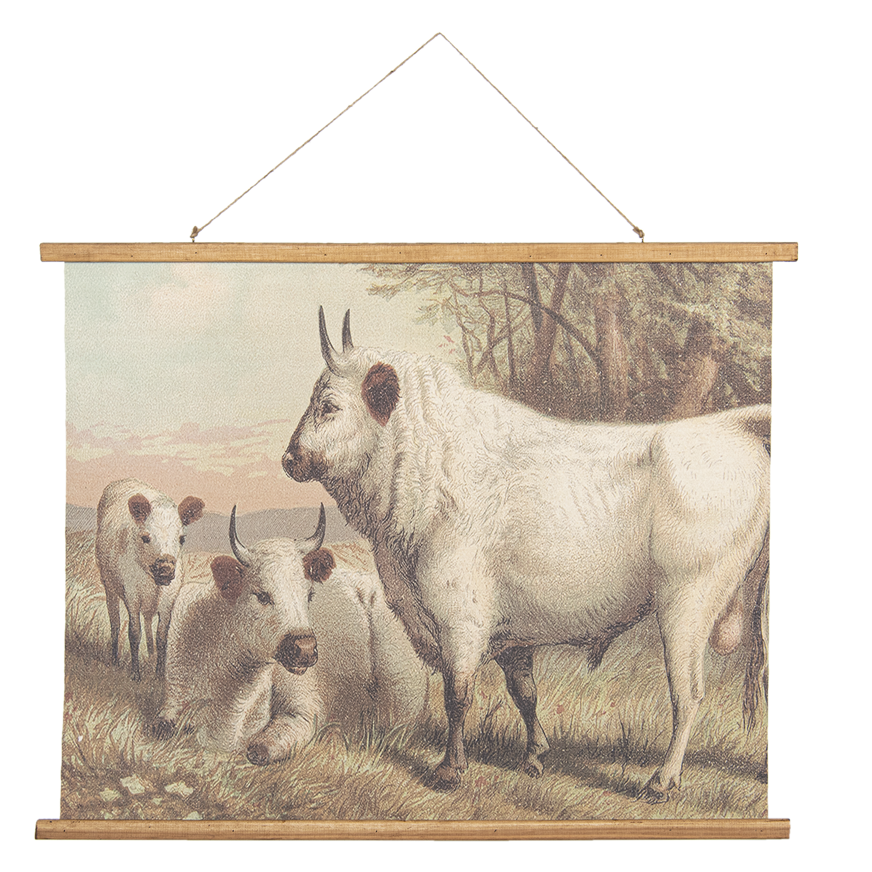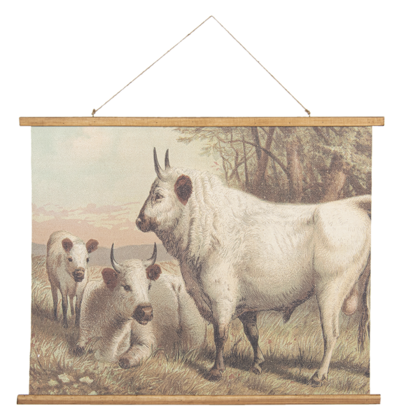 This wall map with cattle, is an affordable piece of wall decoration for any interior. This blackboard is made of real linen, not paper. The size of this roll-up wall decoration is 100x75m.