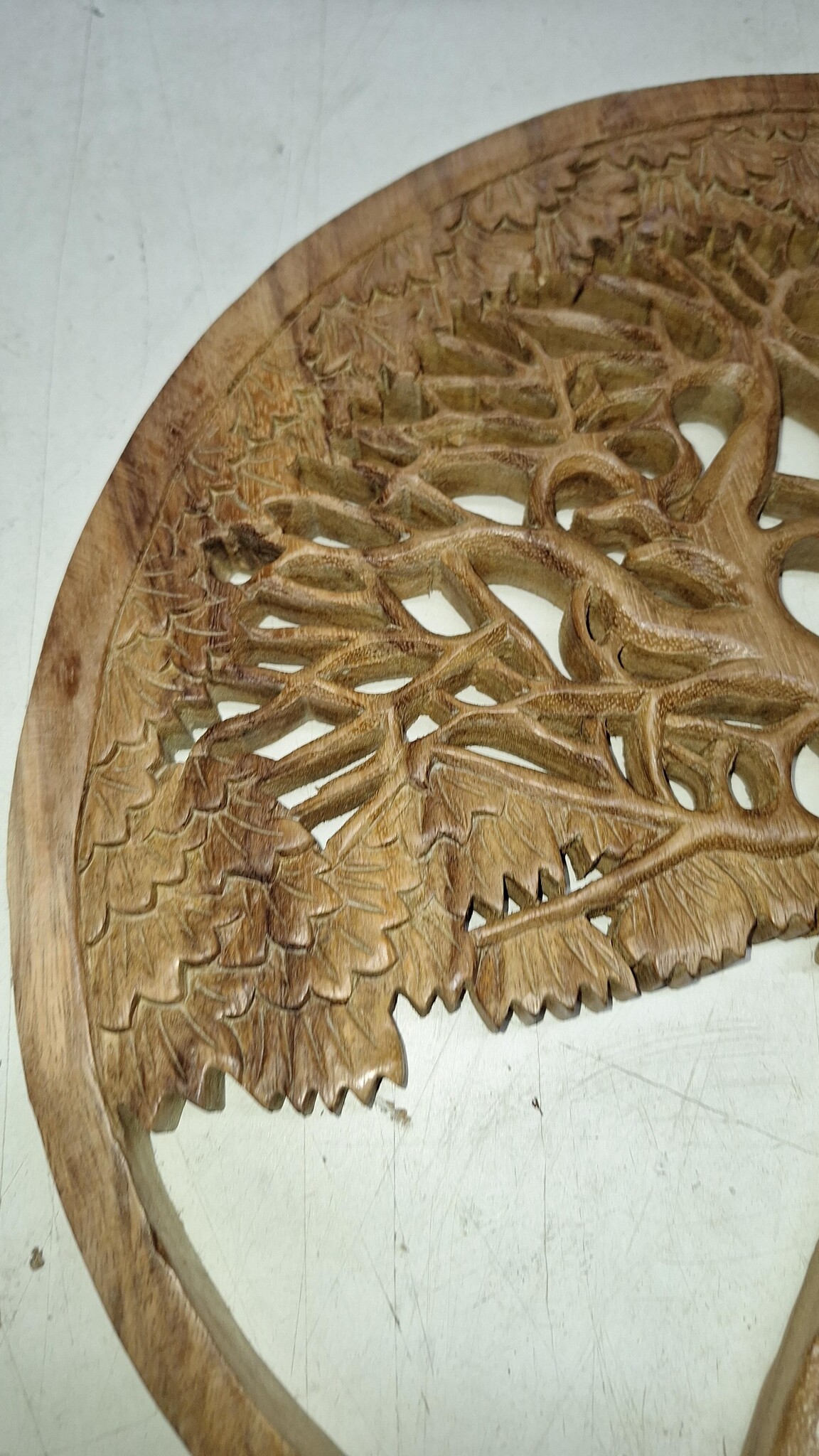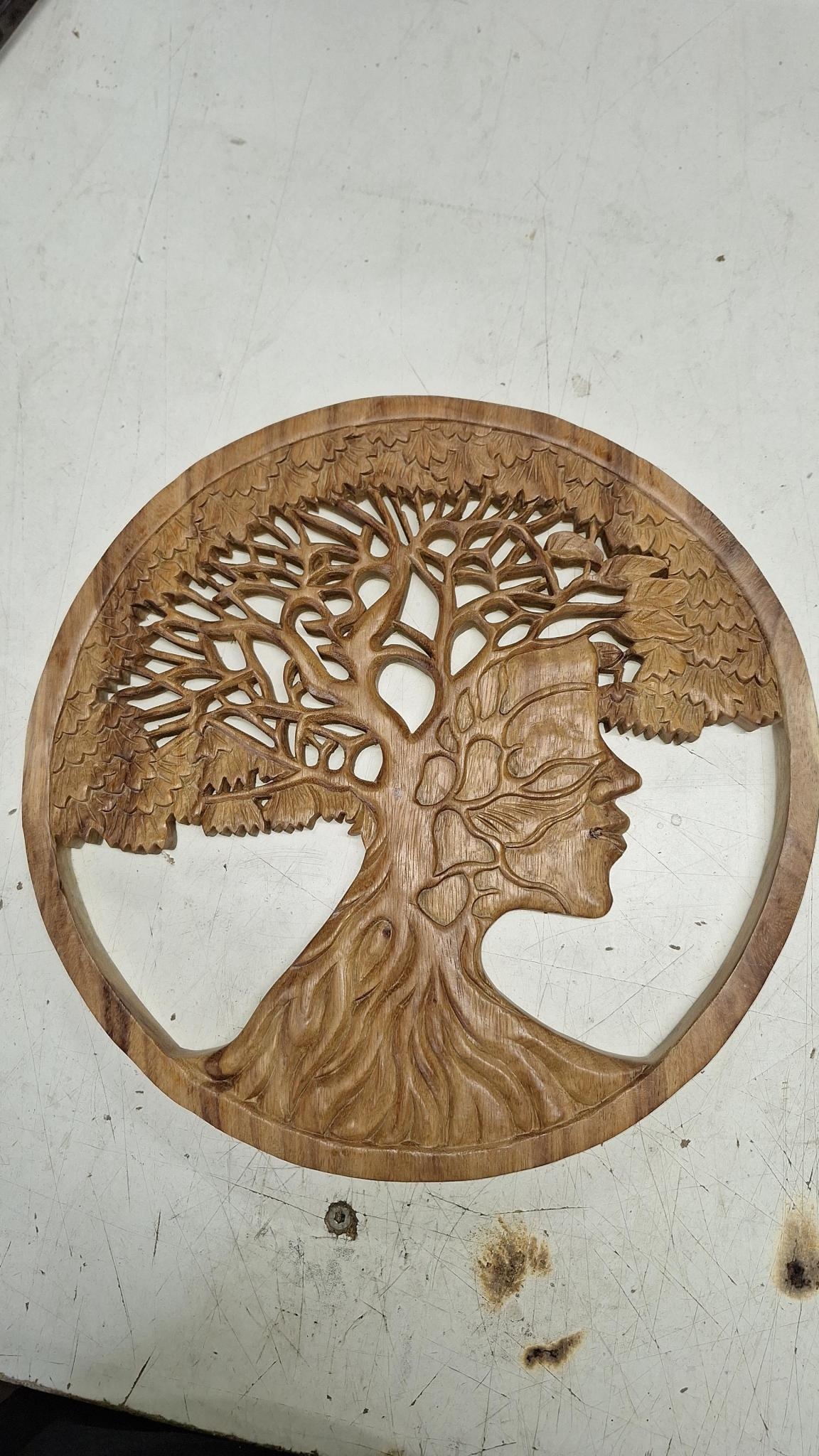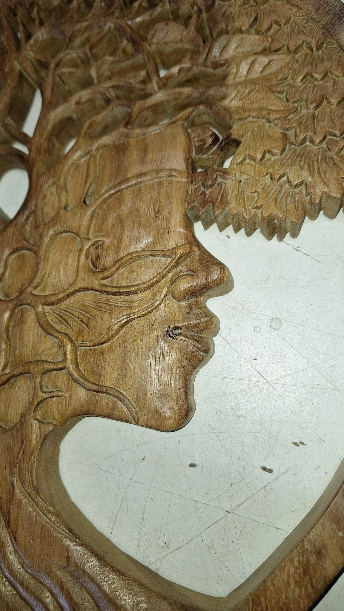 Wooden wall panel manually made of solid Suar wood. Pictured is a beautiful tree of life with a face. Many many hours of carving work went into this wooden panel. Everything you see; every curl Beautiful and twigs, everything is made by human hands.