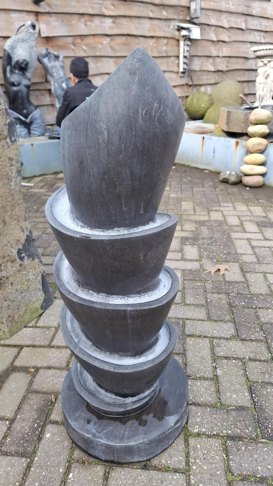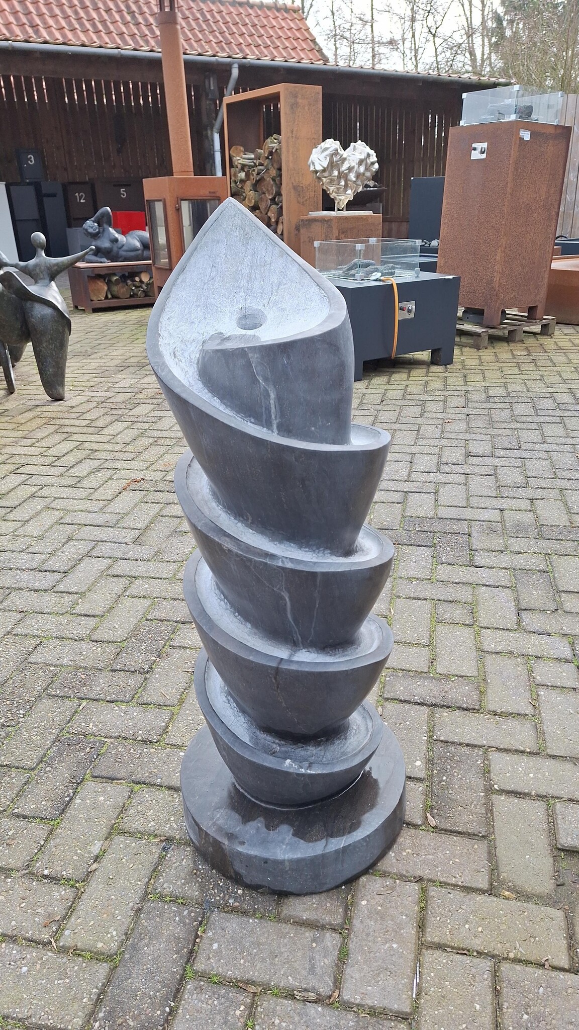 Unique model of water feature made of honed marble. This is a playful model, a bit free form, slightly sloping upwards.