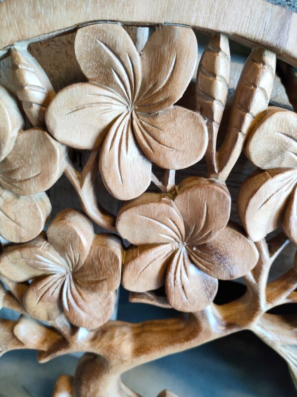Beautiful Wooden wall panel handcrafted from solid Suar wood. Pictured is a beautiful tree of life with flowers. Many many hours of carving work went into this wooden panel. Everything you see; every curl and twig, everything is made by human hands.
