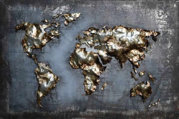 Mooi wordt uw huis, bedrijf of veranda (buiten onder een afdak dus) met een 3D schilderij . Dit model met een landkaart is helemaal met de hand gemaakt. Alles is van metaal, achtergrond en figuur dus. Omdat het handgeschilderd is, kan de kleur iets afwijken van de foto, ze zijn nooit precies hezelfde.