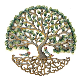 Deze handgemaakte wanddecoratie van 58 cm toont een gedetailleerde Levensboom me…