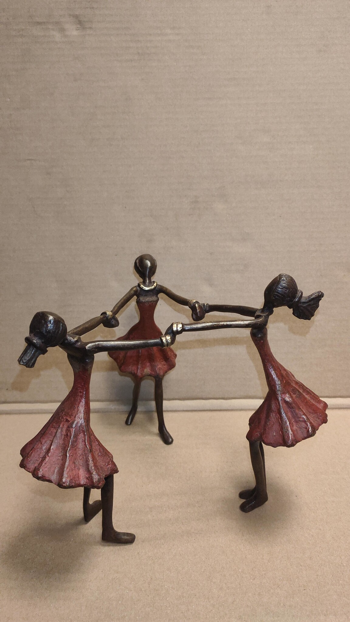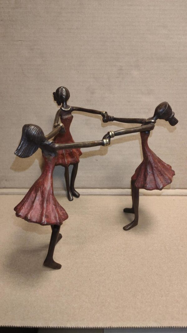 Afrikaans bronzen beeld 3 Dansende vrouwen rood 18cm