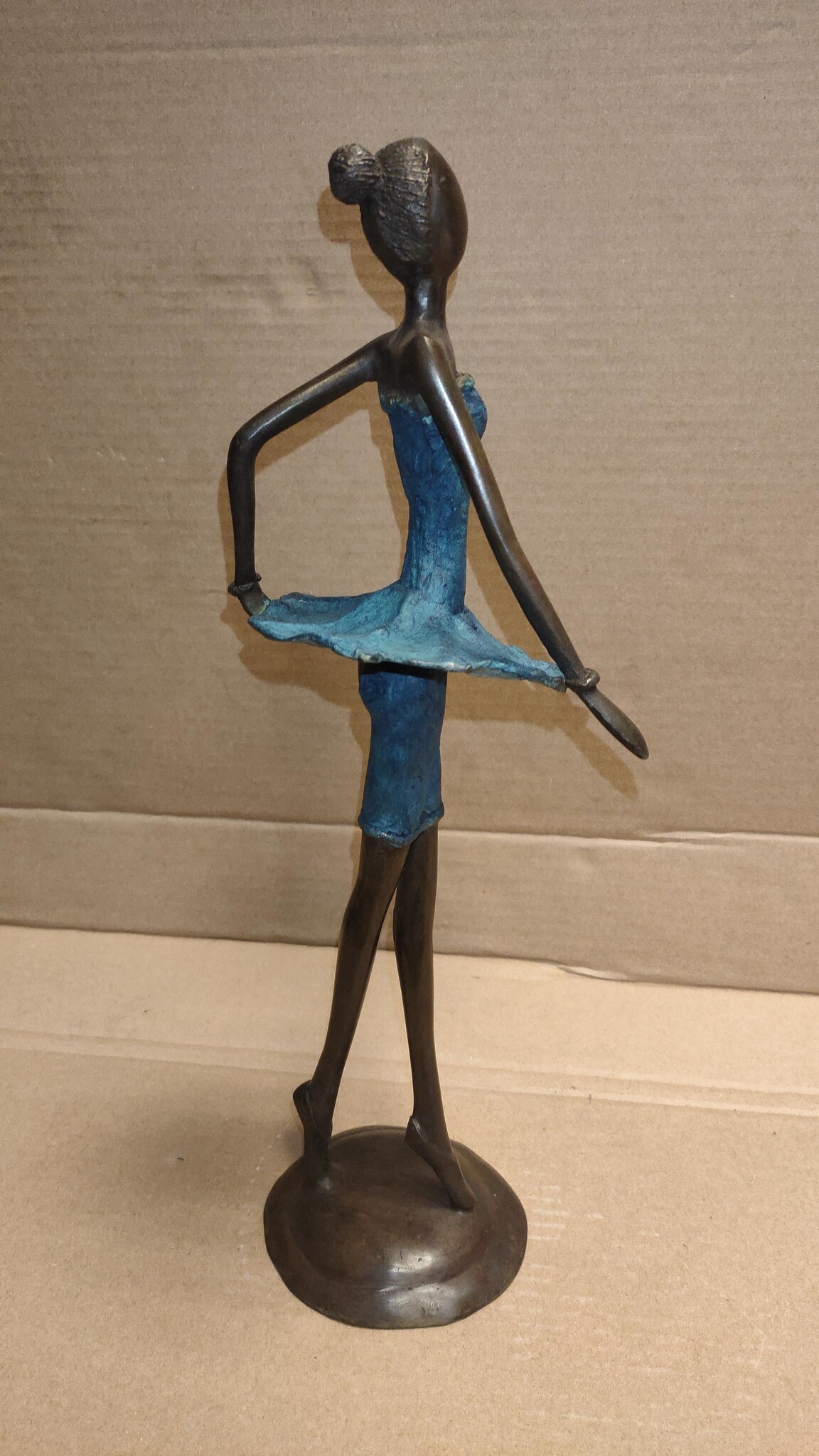 Afrikaans bronzen beeld Ballerina armen omlaag blauw 37cm