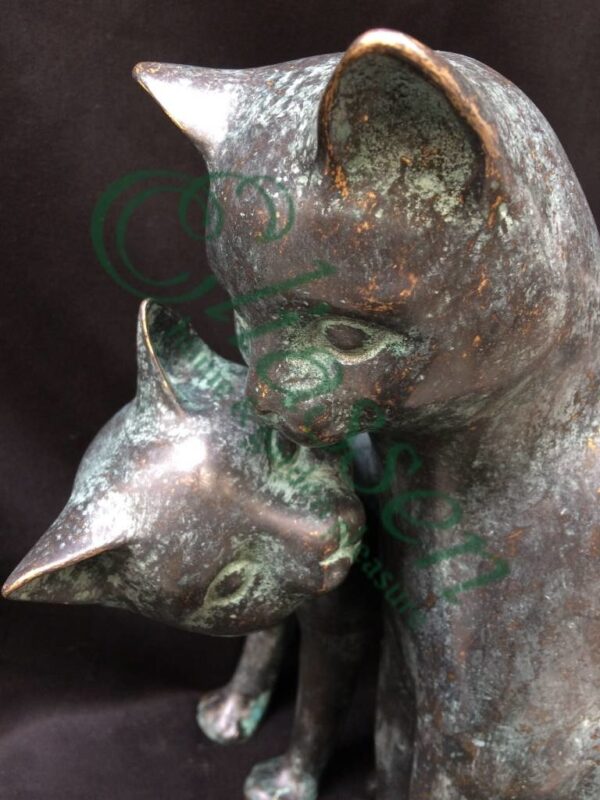 Mooi beeld van 2 poezen van hoogwaardig brons met een minimale kopergehalte van 75% waardoor een zeer lange levensduur gegarandeerd is.