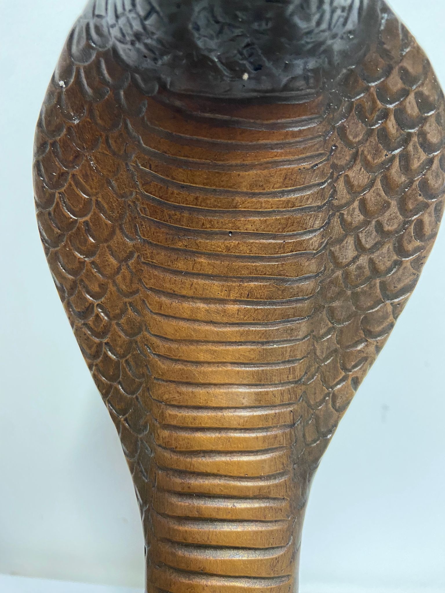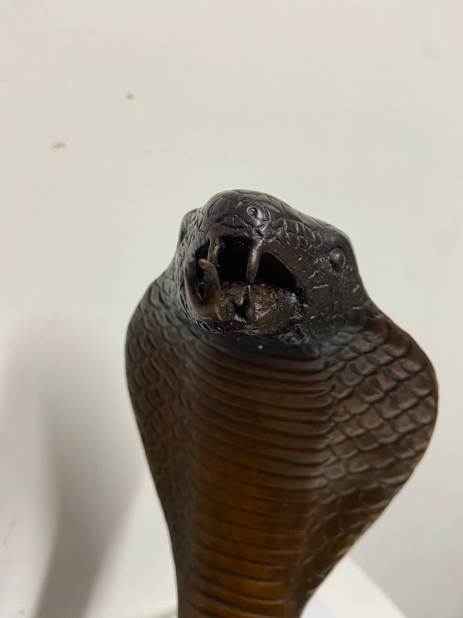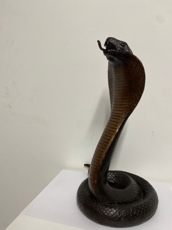 Mooi modern modern vorm gegeven beeld van Cobra slang. Gemaakt van 100% hoogwaardig brons met een minimale kopergehalte van 75% waardoor een zeer lange levensduur gegarandeerd is en geen lelijke vlekken ontstaan. Een prachtig en duurzaam decoratie object voor huis , bedrijf of tuin, maar ook voor een prachtig geschenk.