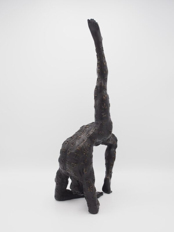 Mooi beeld van een danser met één been omhoog van hoogwaardig brons met een minimale kopergehalte van 75% waardoor een zeer lange levensduur gegarandeerd is.