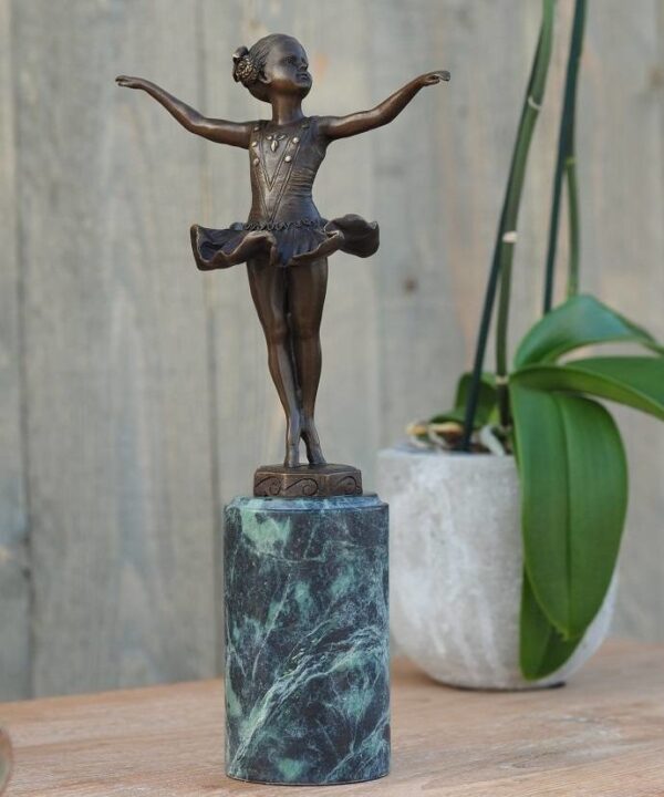 Mooi beeld van een dansend meisje van hoogwaardig brons met een minimale kopergehalte van 75% waardoor een zeer lange levensduur gegarandeerd is.