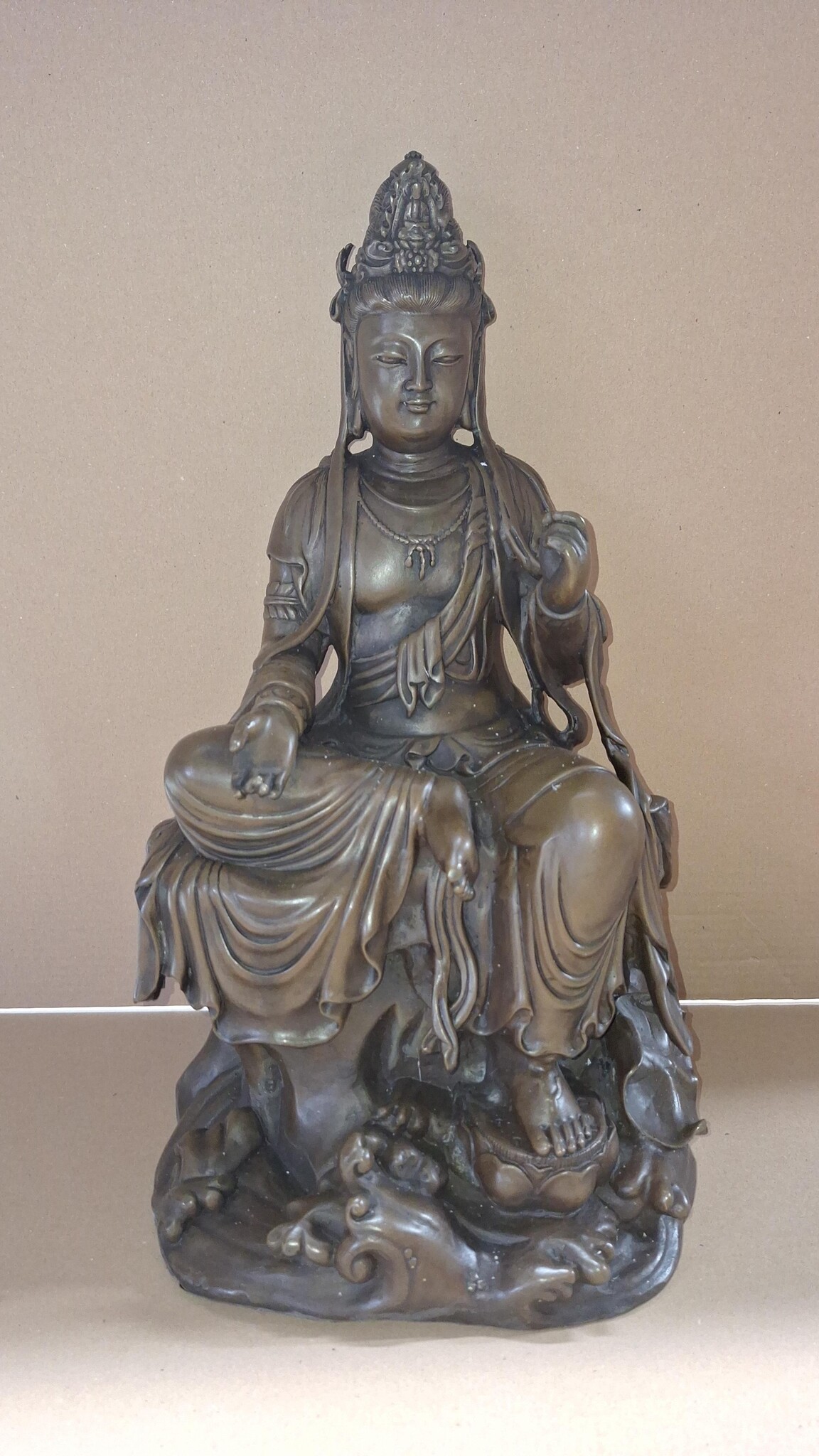 Dit bronzen tijdloze beeld van een Zittende dewi tara figuur heeft de maat 19x26x45cm en is op ambachtelijke wijze gemaakt met de zogenoemde verlorenwas methode.