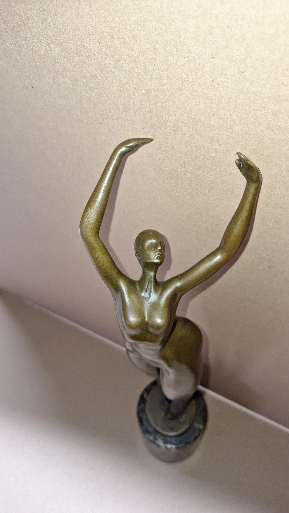 Beeld brons dikke naakte vrouw omhoogreikend op sokkel47cm
