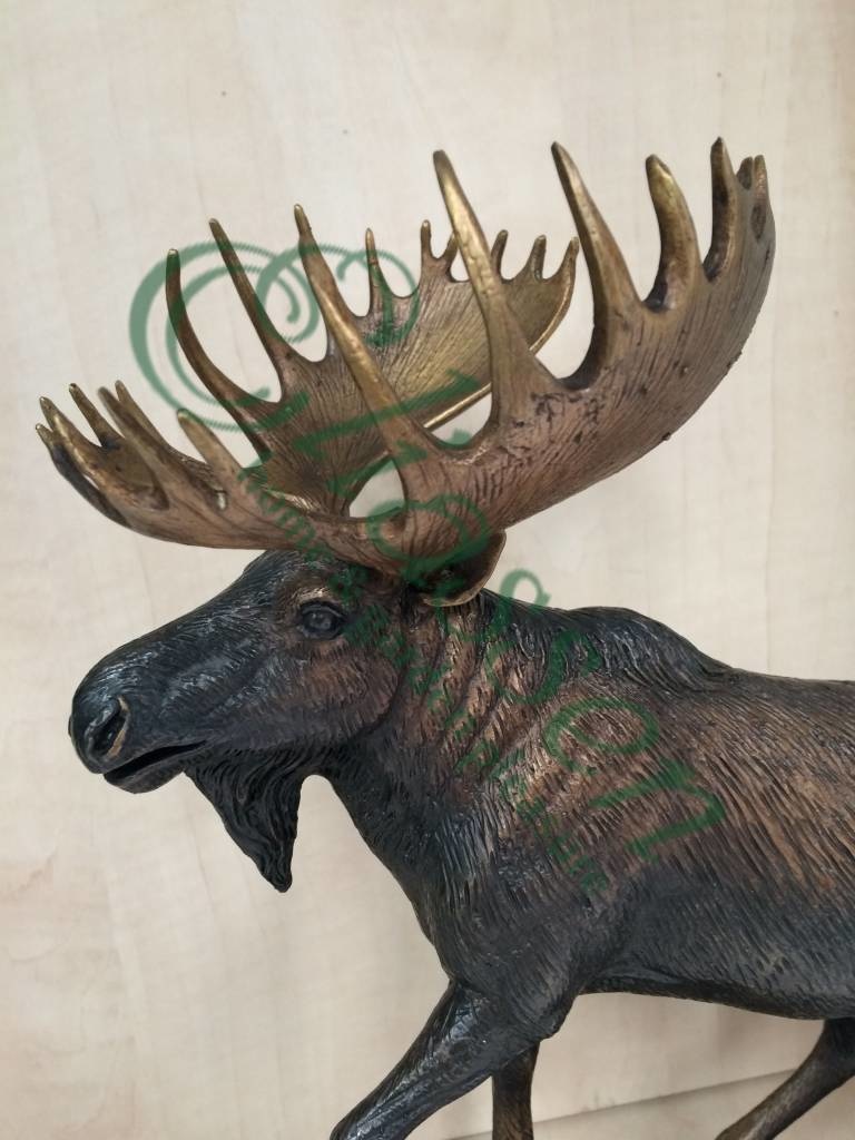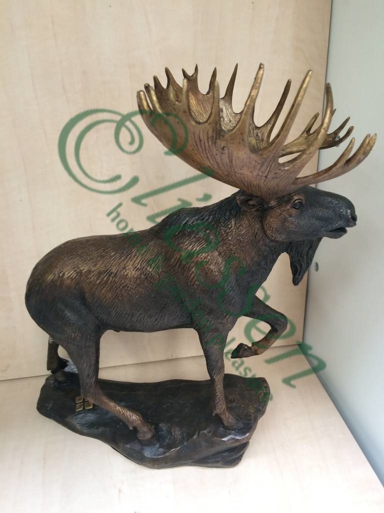 Mooi beeld van een eland van hoogwaardig brons met een minimale kopergehalte van 75% waardoor een zeer lange levensduur gegarandeerd is.