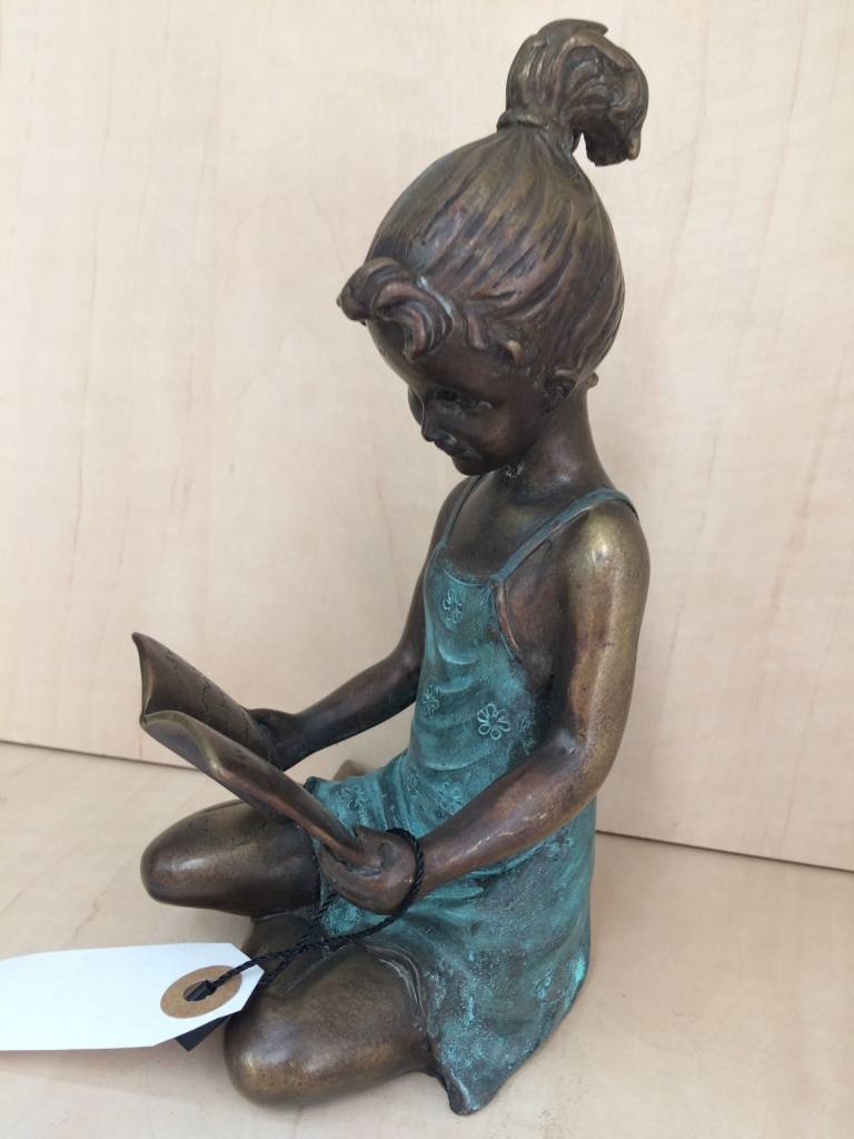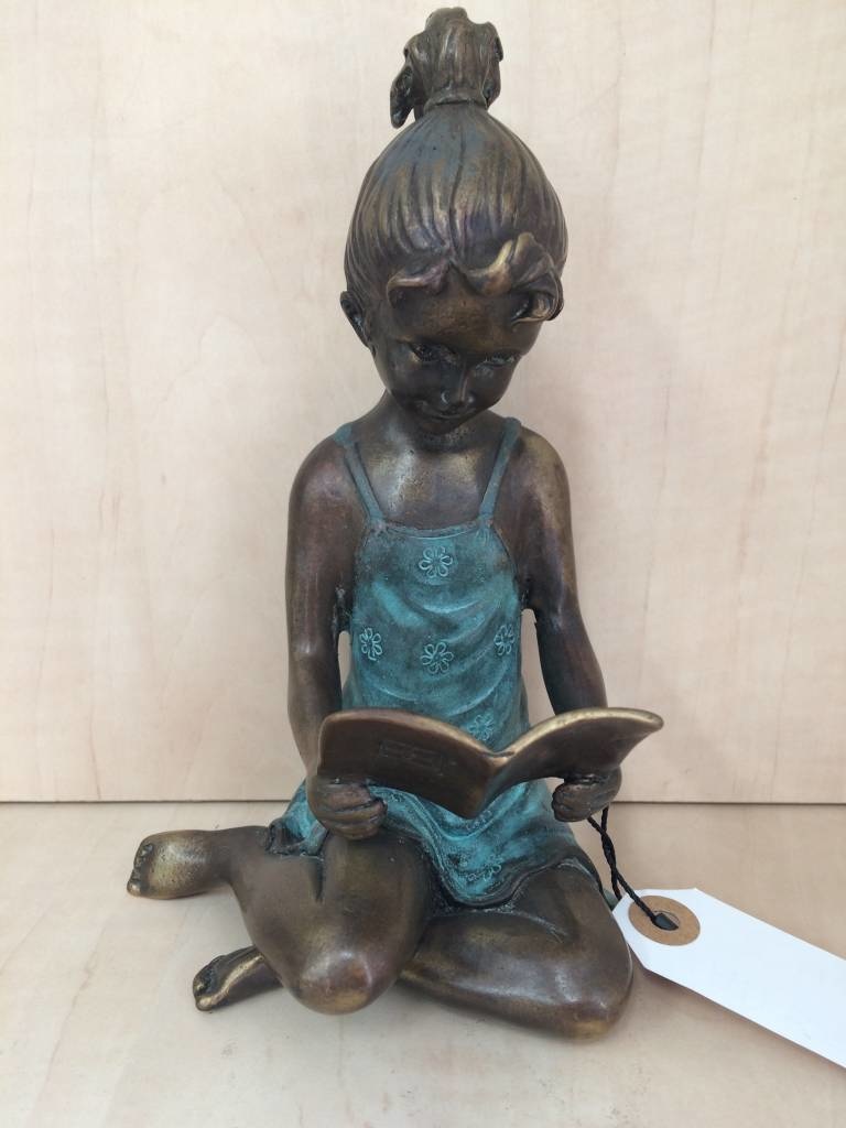 Mooi beeld van een meisje met een boek van hoogwaardig brons met een minimale kopergehalte van 75% waardoor een zeer lange levensduur gegarandeerd is.