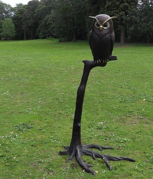 Mooi beeld van een uil op een tak van hoogwaardig brons met een minimale kopergehalte van 75% waardoor een zeer lange levensduur gegarandeerd is.