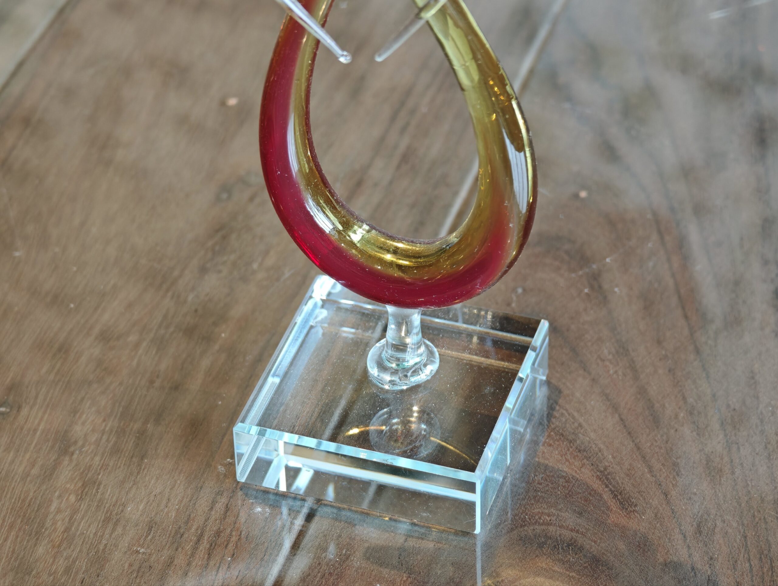Omdat dit object het resultaat is van puur handwerk, haal je met elk beeld een uniek unicum in huis. Geen enkele kronkeling is exact gelijk en het spel van de kleuren in de kern verschilt per exemplaar. Dit ambachtelijke karakter zorgt ervoor dat jouw beeld een geheel eigen karakter heeft en telkens weer anders reageert op het licht in je kamer. Of je het nu als symbool van liefde cadeau doet of een prominente plek geeft op je dressoir bij Eliassen in Ammerzoden, dit beeld blijft een boeiend object om naar te kijken.