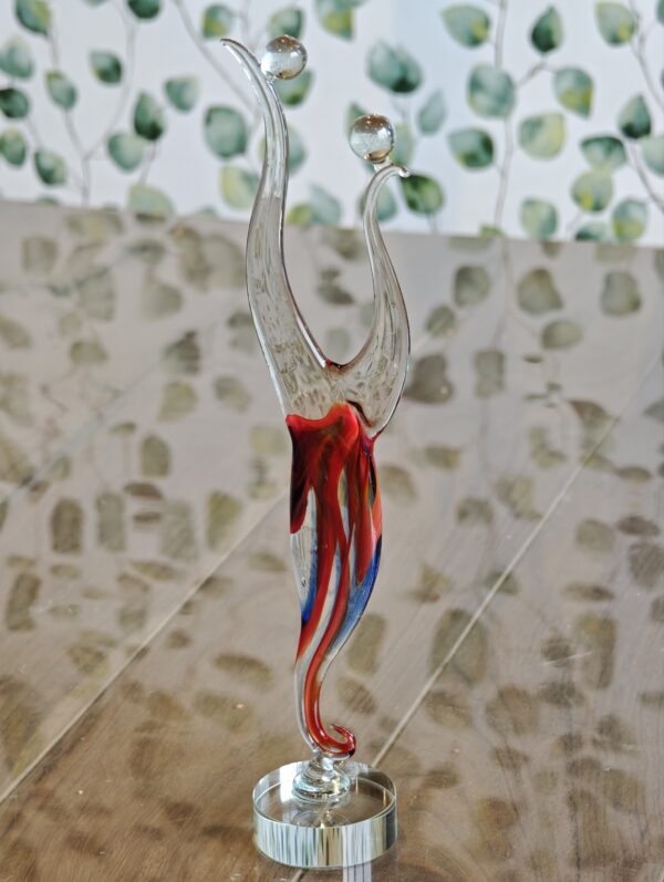 Omdat dit beeld het resultaat is van puur handwerk, haal je bij Eliassen in Ammerzoden altijd een uniek object in huis. Geen enkel exemplaar heeft exact hetzelfde kleurverloop of dezelfde verfijnde lijnen, wat jouw beeld tot een exclusief kunstwerk maakt. De ronde glazen voet zorgt voor een stabiele en moderne presentatie, waarbij het licht prachtig speelt met de gekleurde kern. Of je het nu een plekje geeft in je eigen woonkamer of cadeau doet voor een bijzondere gelegenheid, dit beeld van Eliassen blijft een tijdloze blikvanger.