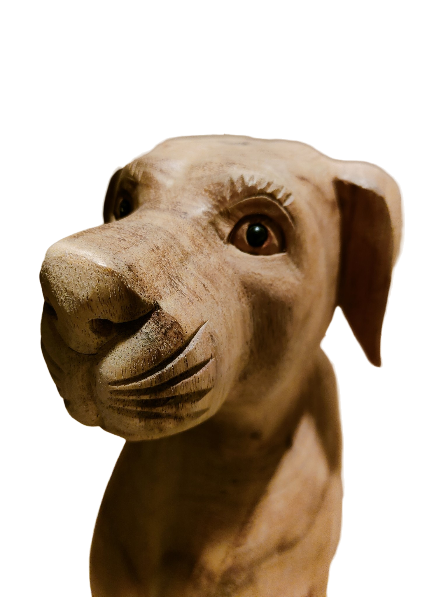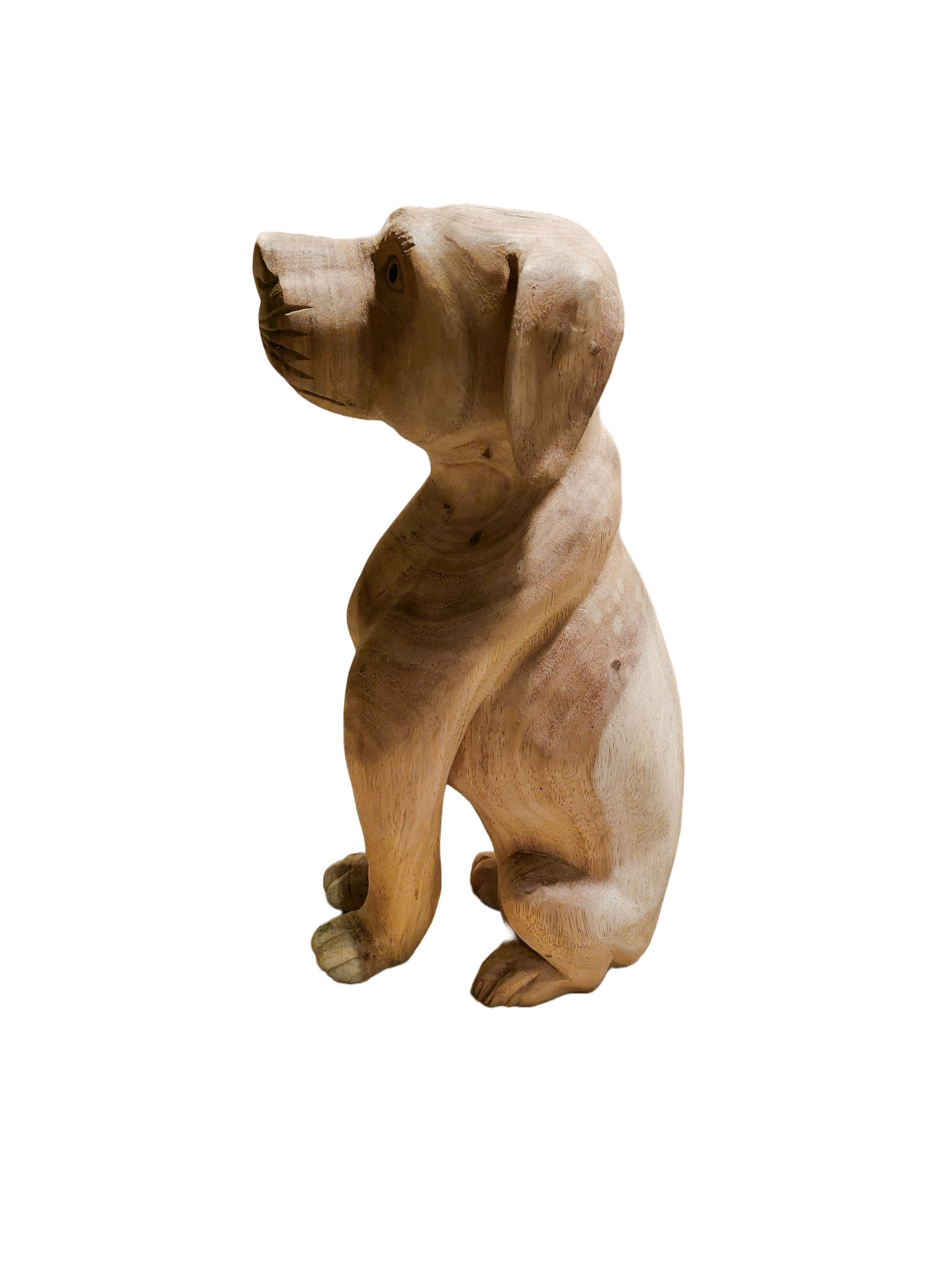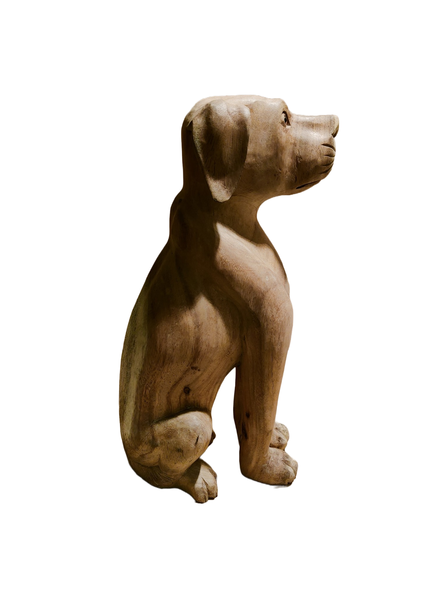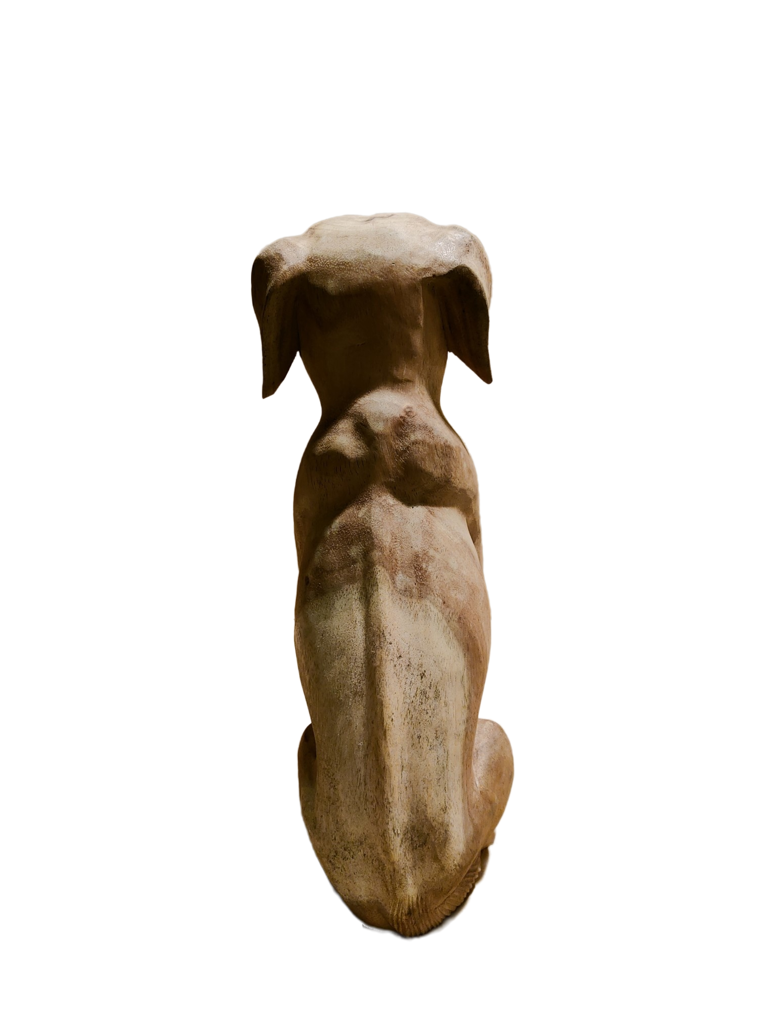 Prachtig stukje vakwerk, deze staande hond, handmatig gemaakt van massief Suar hout. Het is zeer knap hoe de vorm is weer gegeven. Zeer veel uren werk heeft aan dit model gezeten, om uit een blok harde suar hout dit beeld te realiseren.