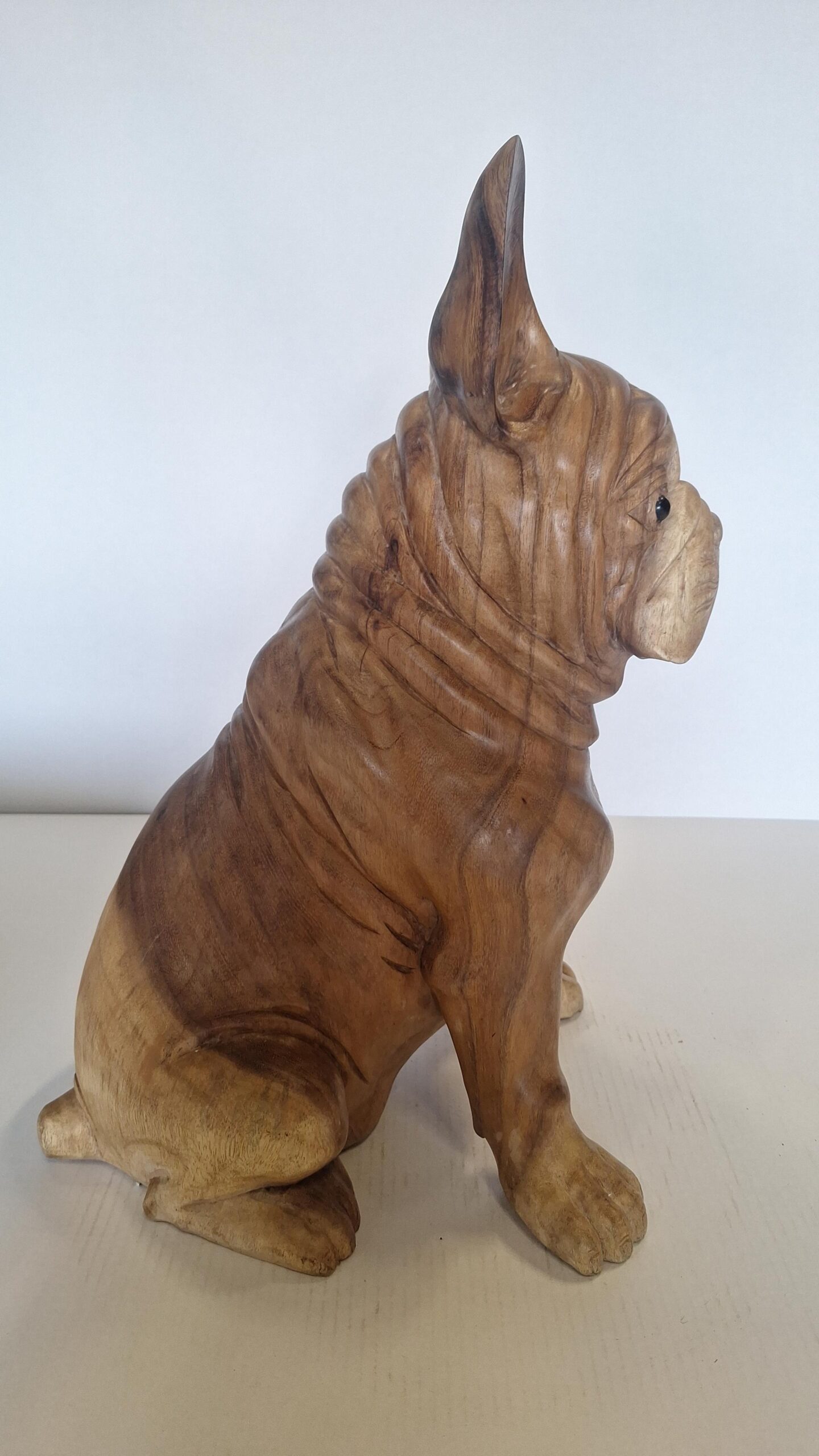 Prachtig stukje vakwerk, deze zittende Bulldog hond, handmatig gemaakt van massief Suar hout.