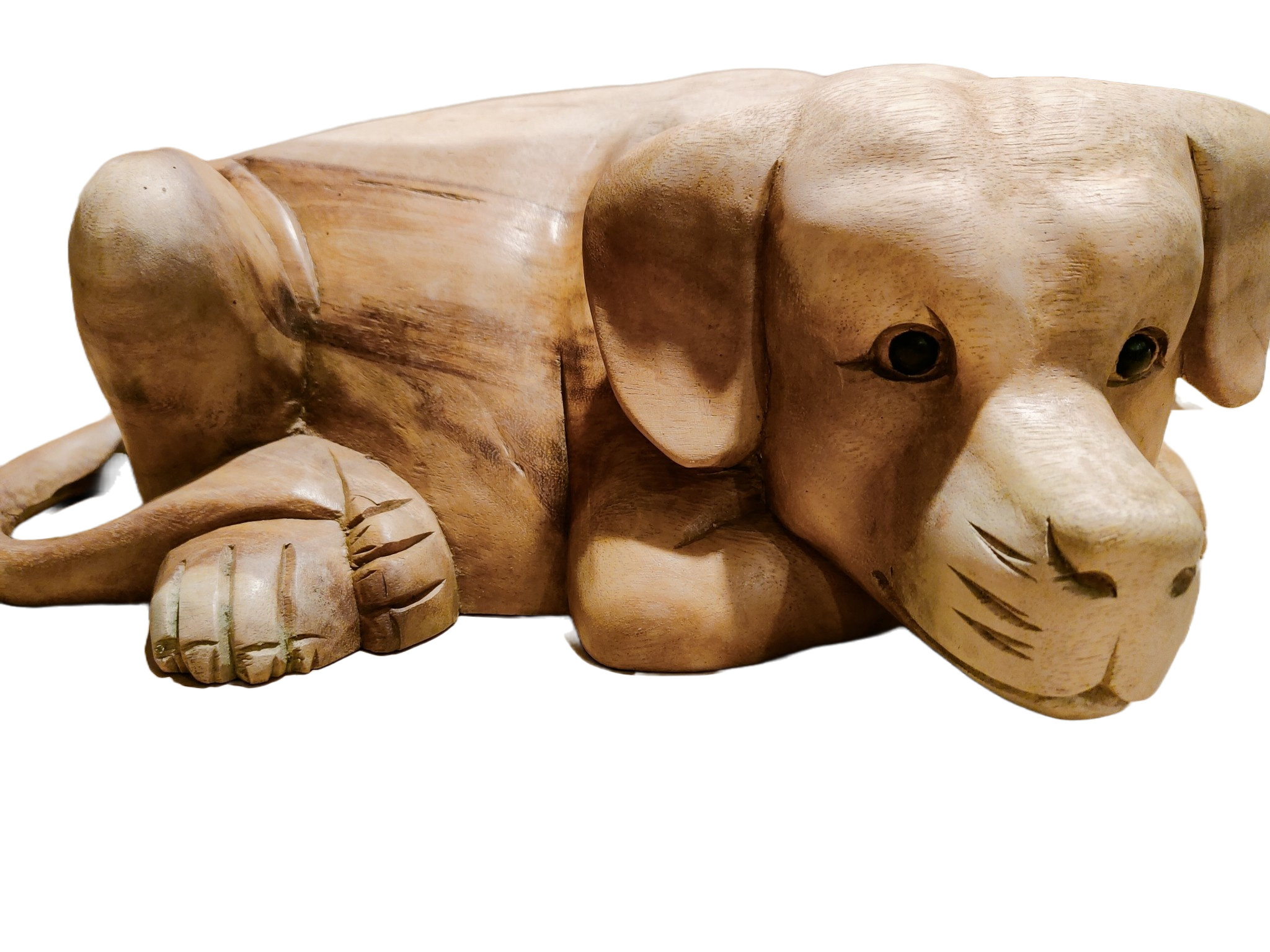 Beeld hout Hond liggend 40cm