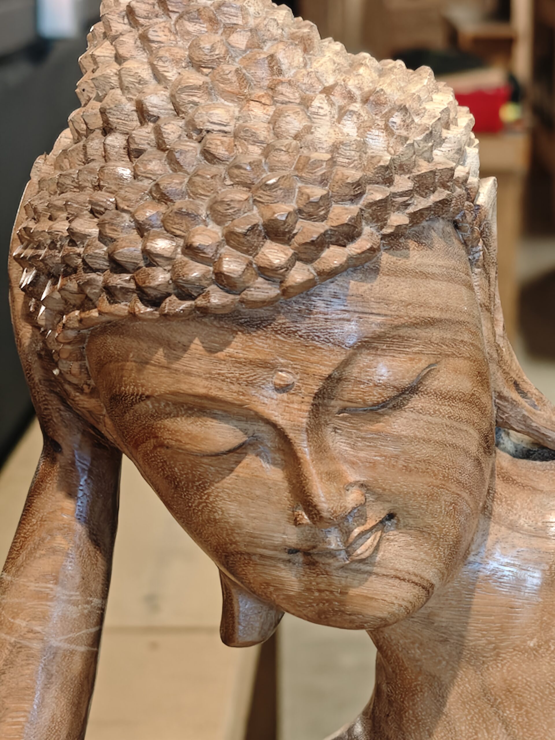 Prachtig stukje vakwerk, deze liggende boeddha, handmatig gemaakt van massief Suar hout.