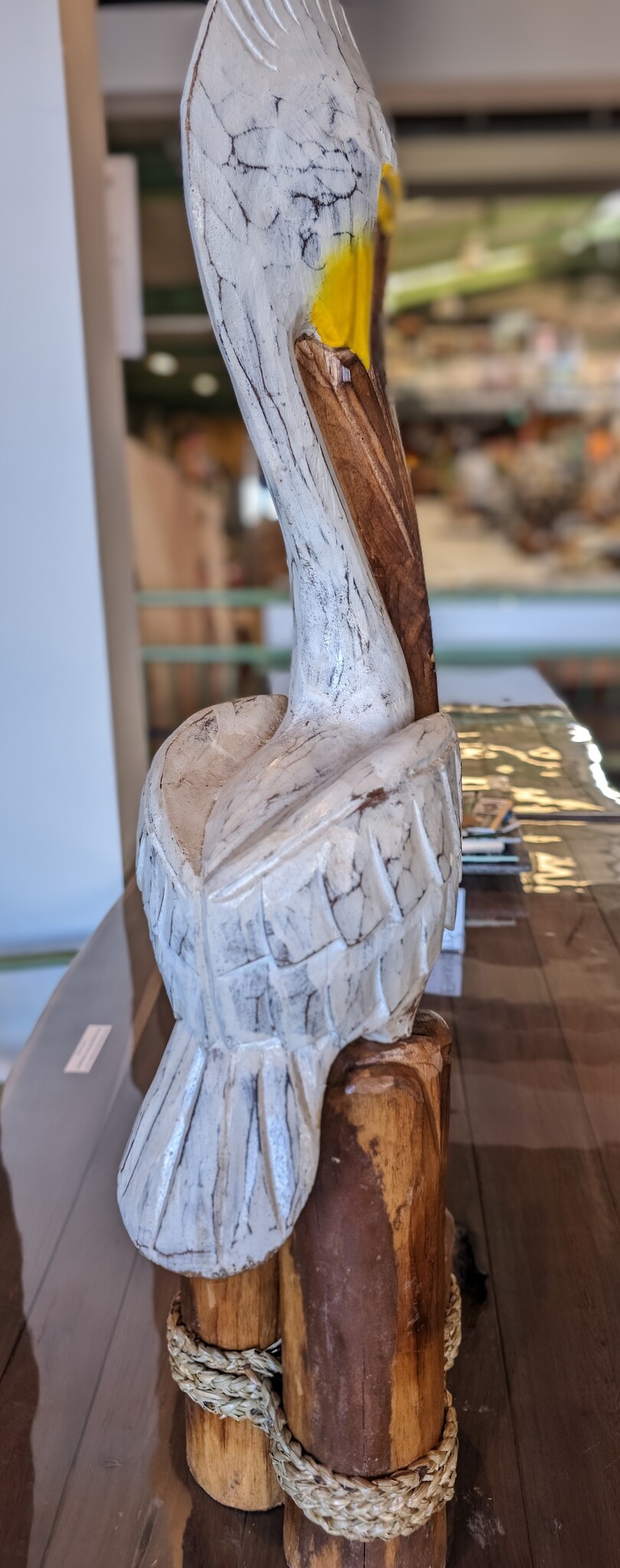Houdt u van hand gemaakte producten? Dan deze handgesneden Pelikaan op meerpaal u zeker aanspreken.