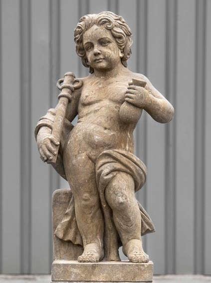 De beelden uit deze serie zijn allemaal gemaakt van massief hoogwaardig beton met een zeer hoog cement gehalte, waardoor al deze beelden met gemak alle weersinvloeden decennia lang kunnen weerstaan. U heeft de mogelijkheid dit beeld in 3 kleuren te bestellen, in de kleuren zandkleur, antiekkleur en roestkleur. De kleuren kunnen in het echt van de foto afwijken omdat het kleuren mensen werk is. Dit barokke betonnen beeld met de afbeelding van een kind met een paal/staaf in zijn/haar handen zal decennia lang de juiste sfeermaker zijn! Door weersinvloeden zal de uitstraling van dit beeld na jaren alleen maar mooier worden.