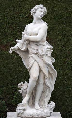 De beelden uit deze serie zijn allemaal gemaakt van massief hoogwaardig beton met een zeer hoog cement gehalte, waardoor al deze beelden met gemak alle weersinvloeden decennia lang kunnen weerstaan. U heeft de mogelijkheid dit beeld in 3 kleuren te bestellen, in de kleuren zandkleur, antiekkleur en roestkleur. De kleuren kunnen in het echt van de foto afwijken omdat het kleuren mensen werk is. Dit barokke betonnen beeld met de afbeelding van halfnaakte vrouw met bloemen en een lange sluier zal decennia lang de juiste sfeermaker zijn! Door weersinvloeden zal de uitstraling van dit beeld na jaren alleen maar mooier worden.