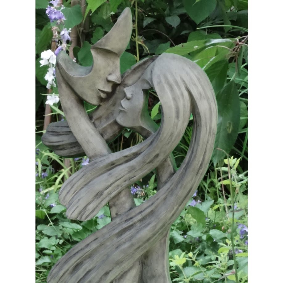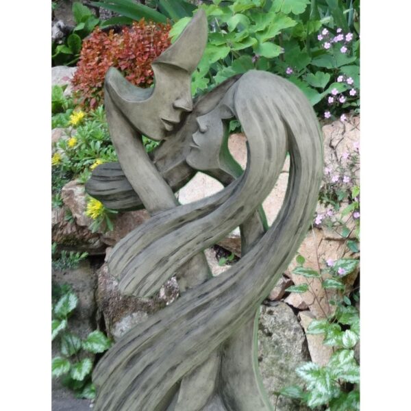 Schitterend mooi is dit sculptuur van 2 abstracte mensen, perfect gedetailleerd, en grijzig ingewassen. Dit beeld is gemaakt van hoogwaardig massief gietsteen wat zorgt voor jarenlang sfeer genot. Prachtig is dit beeld in uw tuin, maar zeker ook binnenshuis, of in/bij uw bedrijf. Staat stabiel op stevige vloerplaat.