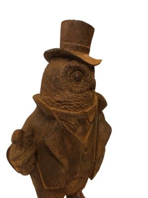 Dit charmante en gedetailleerde beeldje van Professor Uil is 20 centimeter hoog en toont een wijs uiltje met een leesbril, verdiept in een boek. Het is volledig vervaardigd uit massief gietijzer en heeft een authentieke roestkleur, wat zorgt voor een rustieke uitstraling en het materiaal op natuurlijke wijze beschermt. Een speels en sfeervol decoratiestuk dat jouw boekenkast, bureau of vensterbank direct extra karakter geeft.