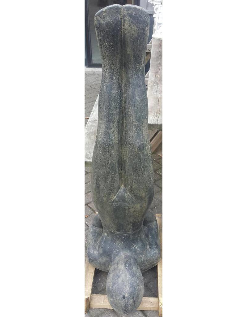 De maat van dit beeld is 40x32x80cm.Dit beeld kan met de benen omhoog en met de benen over de grond geplaatst worden.