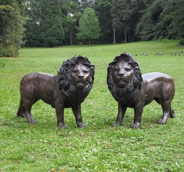 Mooi leeuwenpaar van hoogwaardig brons met een minimale kopergehalte van 75% waardoor een zeer lange levensduur gegarandeerd is.